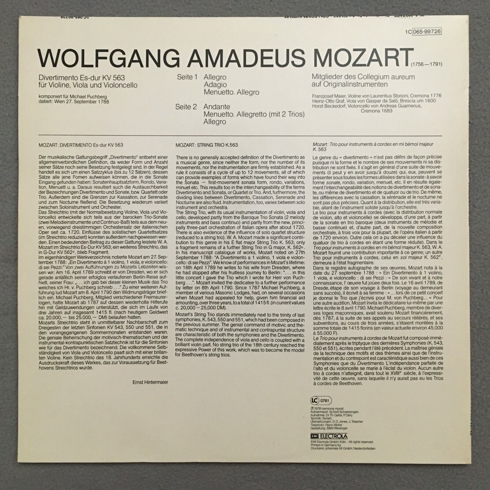 S773 Mozart Divertimento Collegium Aureum Harmonia Mundi 1C 065-99 726 Stereo