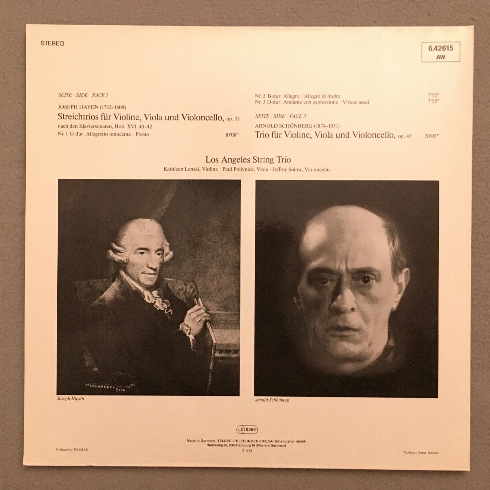 S772 Haydn Schönberg String Trios LA String Trio Telefunken 6.42615 AW Stereo