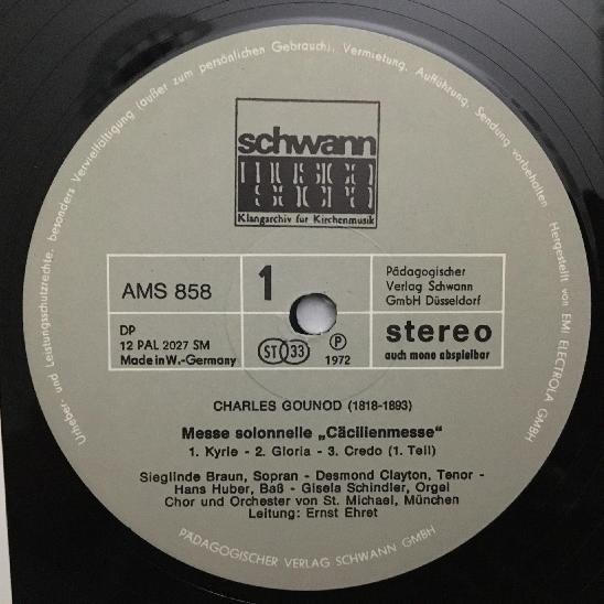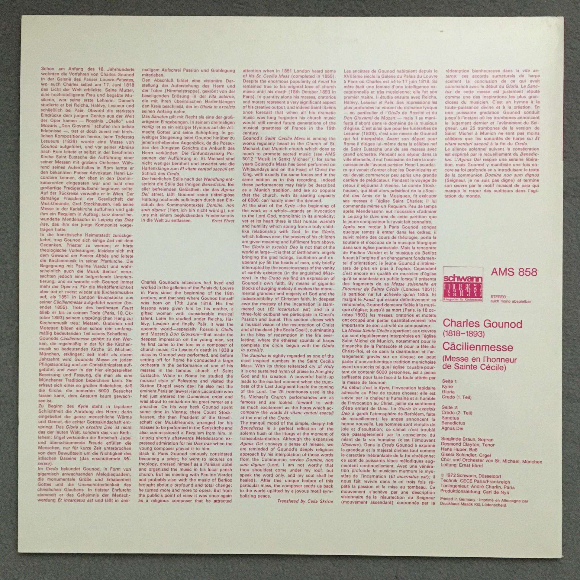 N567 Gounod St. Cecilia Mass Braun Schindler Ehret Schwann AMS 858 Stereo
