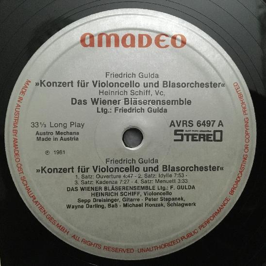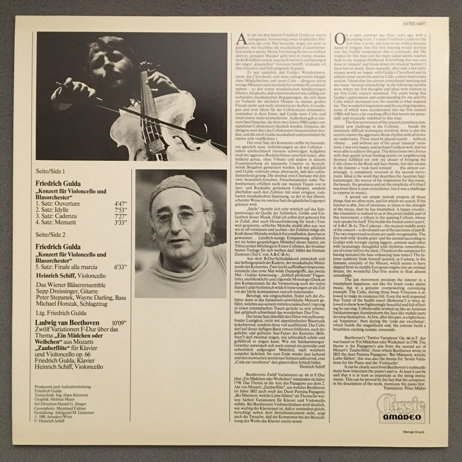 N568 Gulda Cello Concertos Beethoven Variations Schiff Amadeo AVRS 6497 Stereo