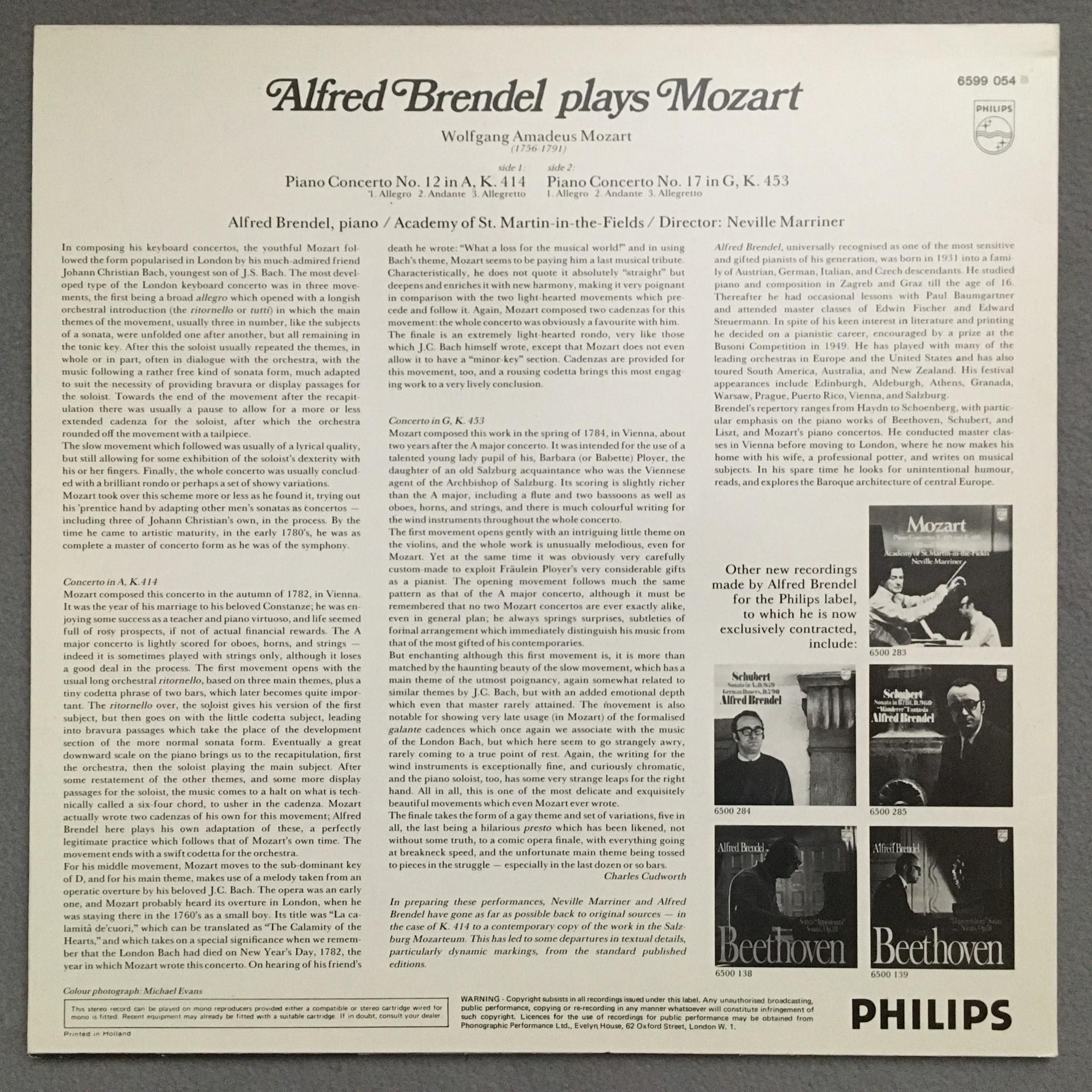 N572 Brendel plays Mozart Piano Concertos No.12 & No.17 Philips 6599 054 Stereo