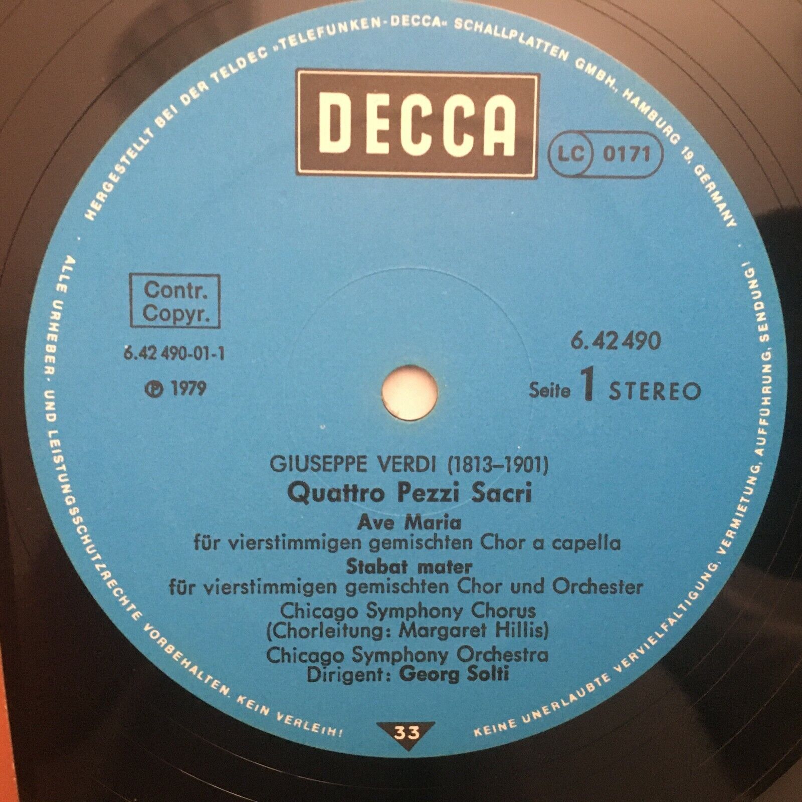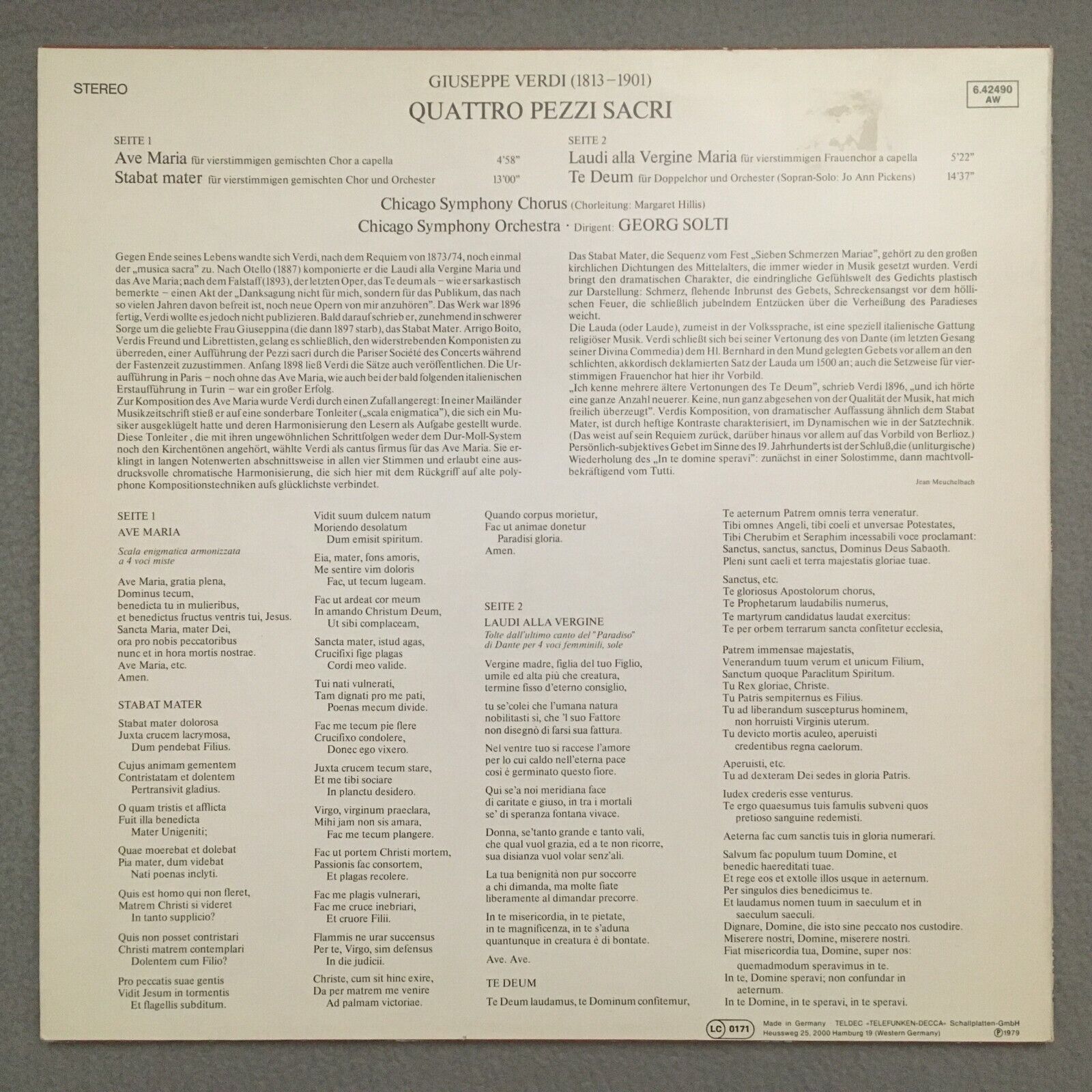 S952 Verdi 4 Sacri Pezzi Ave Maria Te Deum Solti DECCA 6.42490 AW Stereo