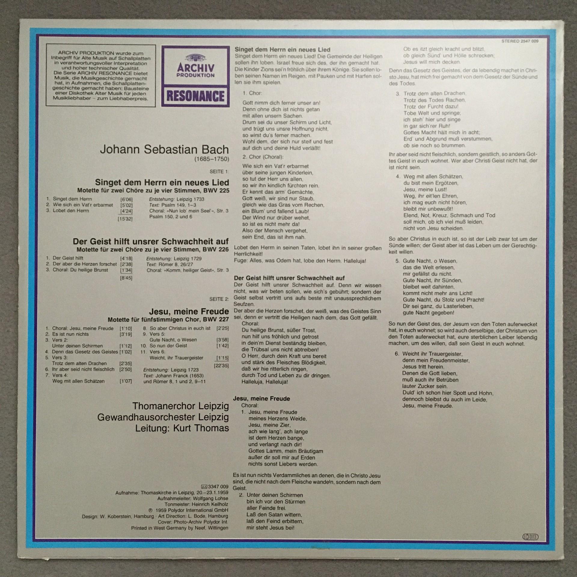 N588 Bach Motets Thomas DGG Archiv 2547 009 Stereo