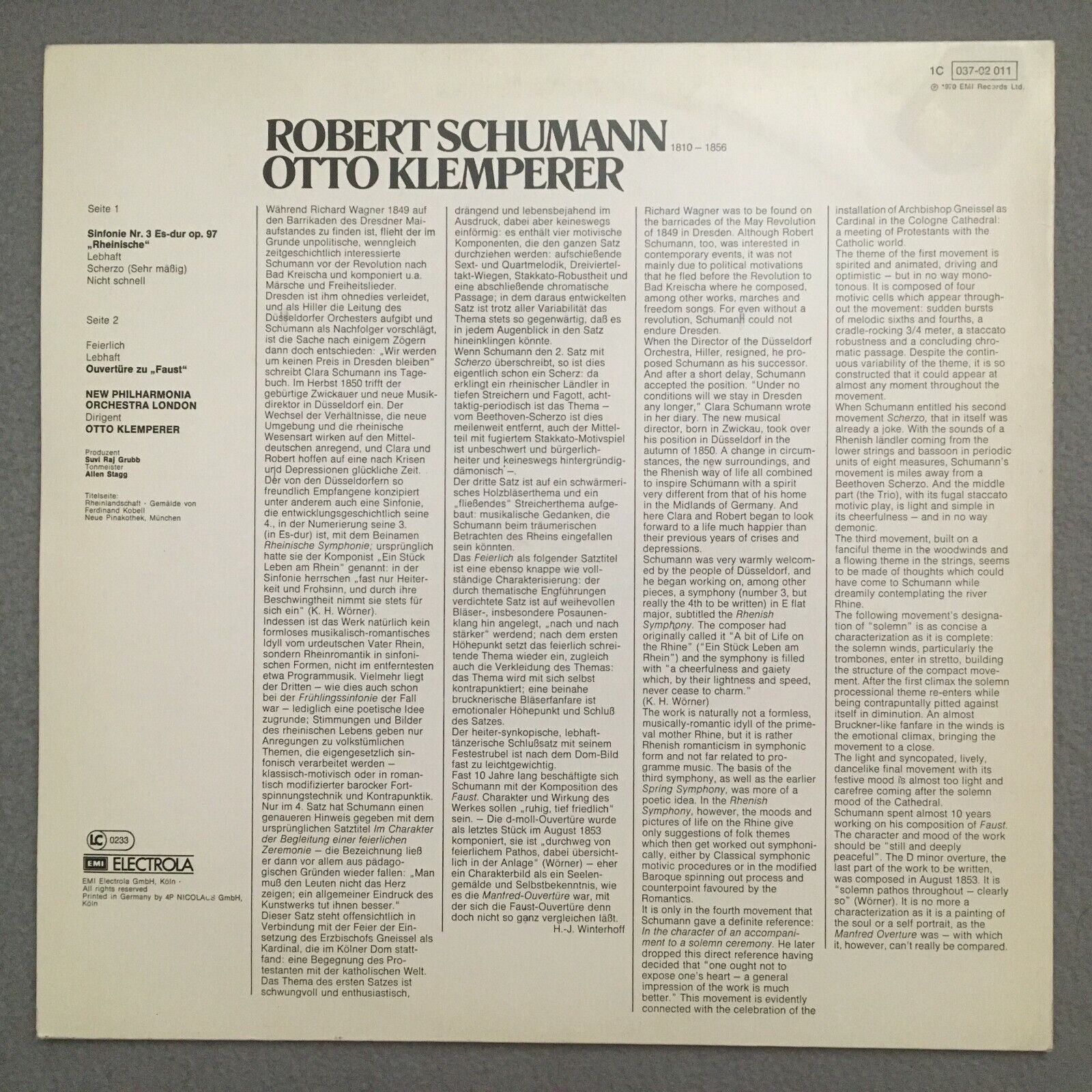 S948 Schumann Symphony No.3 Faust Overture Klemperer EMI 1C 037-02 011 Stereo