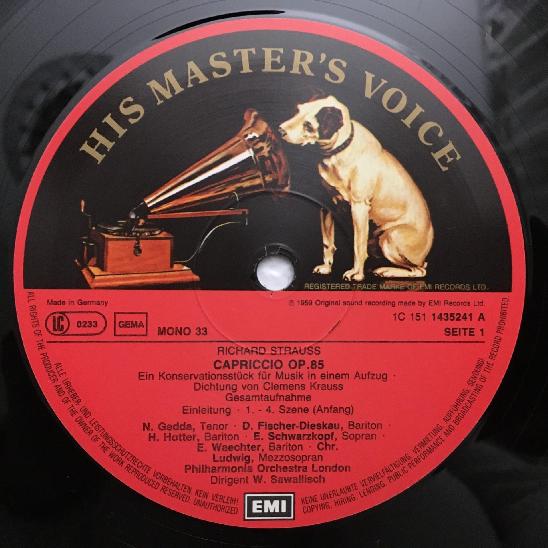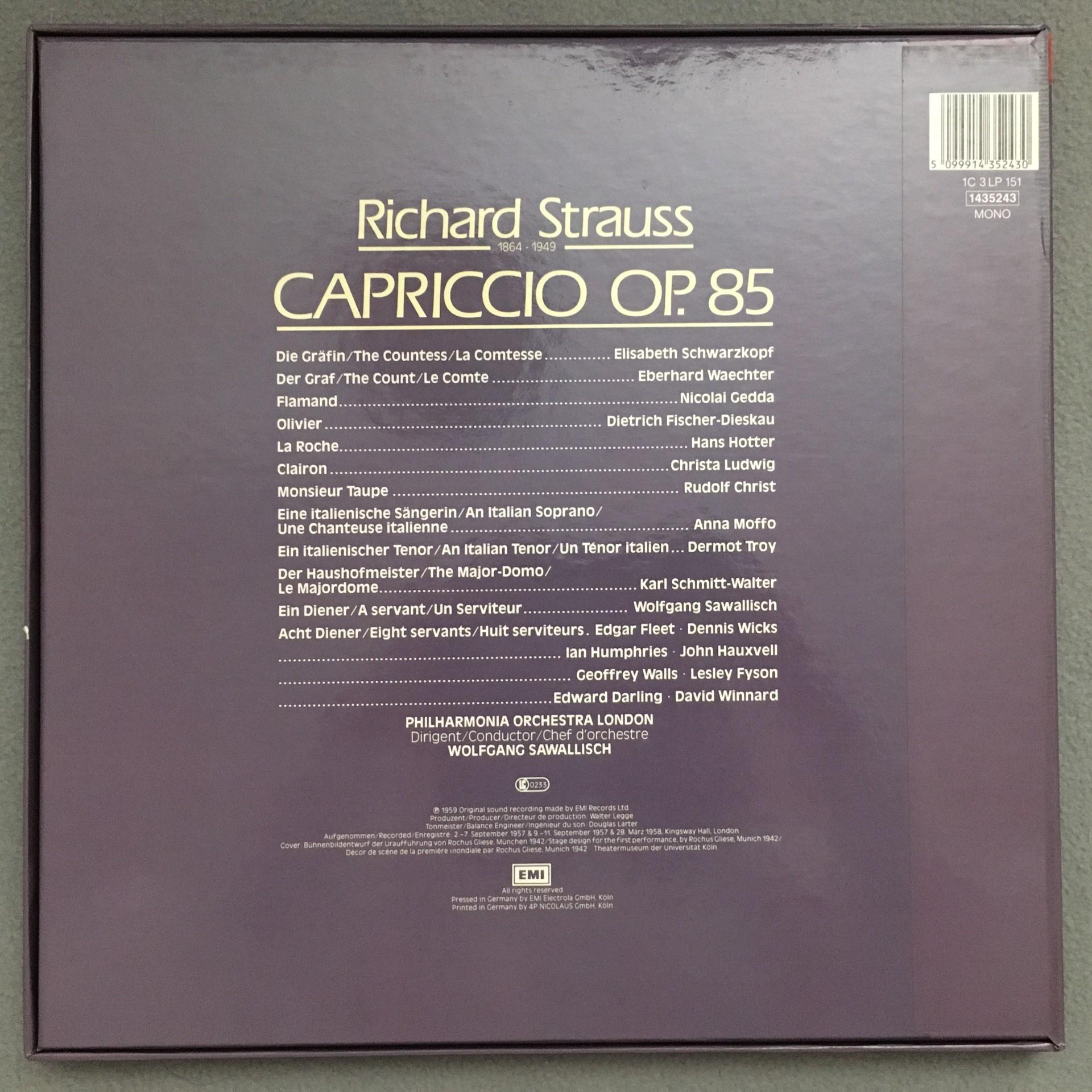 D579 R. Strauss Capriccio Fischer-Dieskau Schwarzkopf Sawallisch 3LP DGG 1435243
