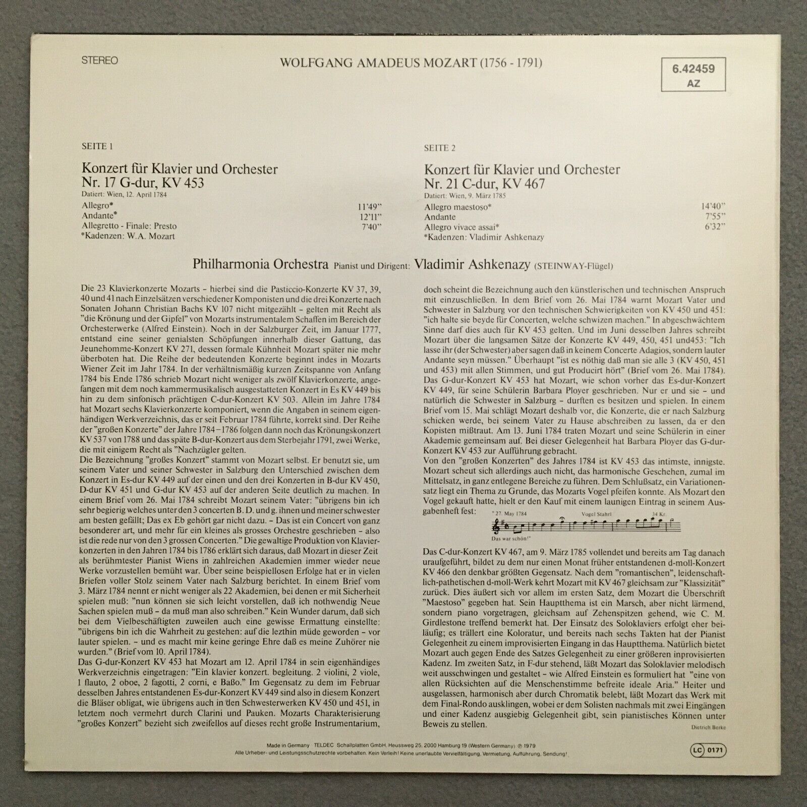S768 Mozart Piano Concertos Ashkenazy DECCA 6.42459 AZ Digital Stereo