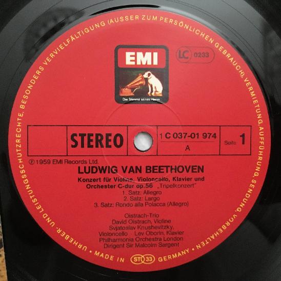 N601 Beethoven Brahms Concertos Oistrakh Trio Fournier Sargent EMI 1C 037-01 974