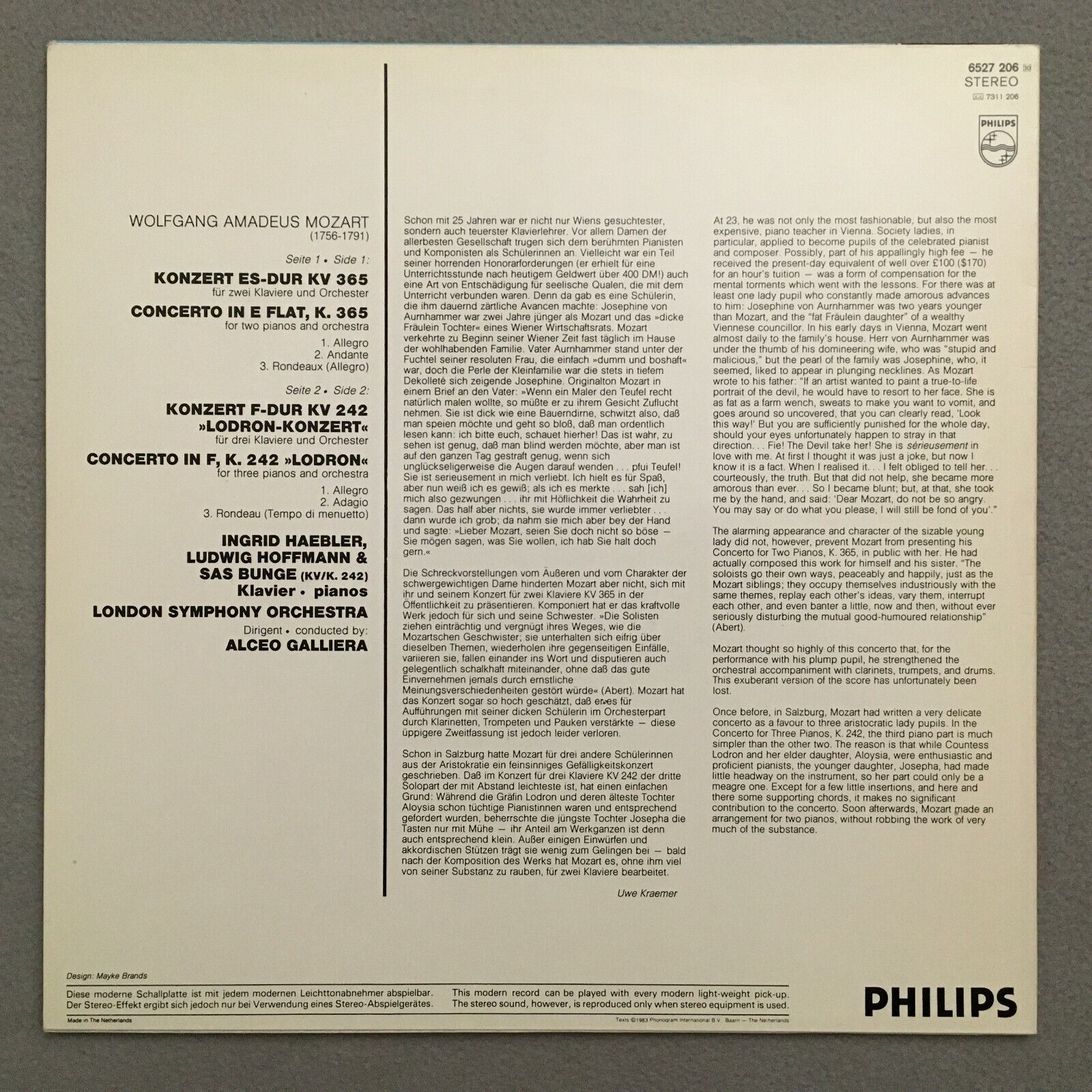 S764 Mozart Piano Concertos Haebler Hoffmann Galliera Philips 6527 206 Stereo