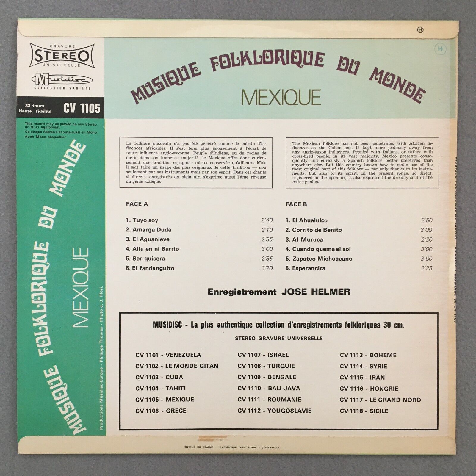 S760 Music from Mexico Helmer Musidisc 30 CV 1105 Stereo