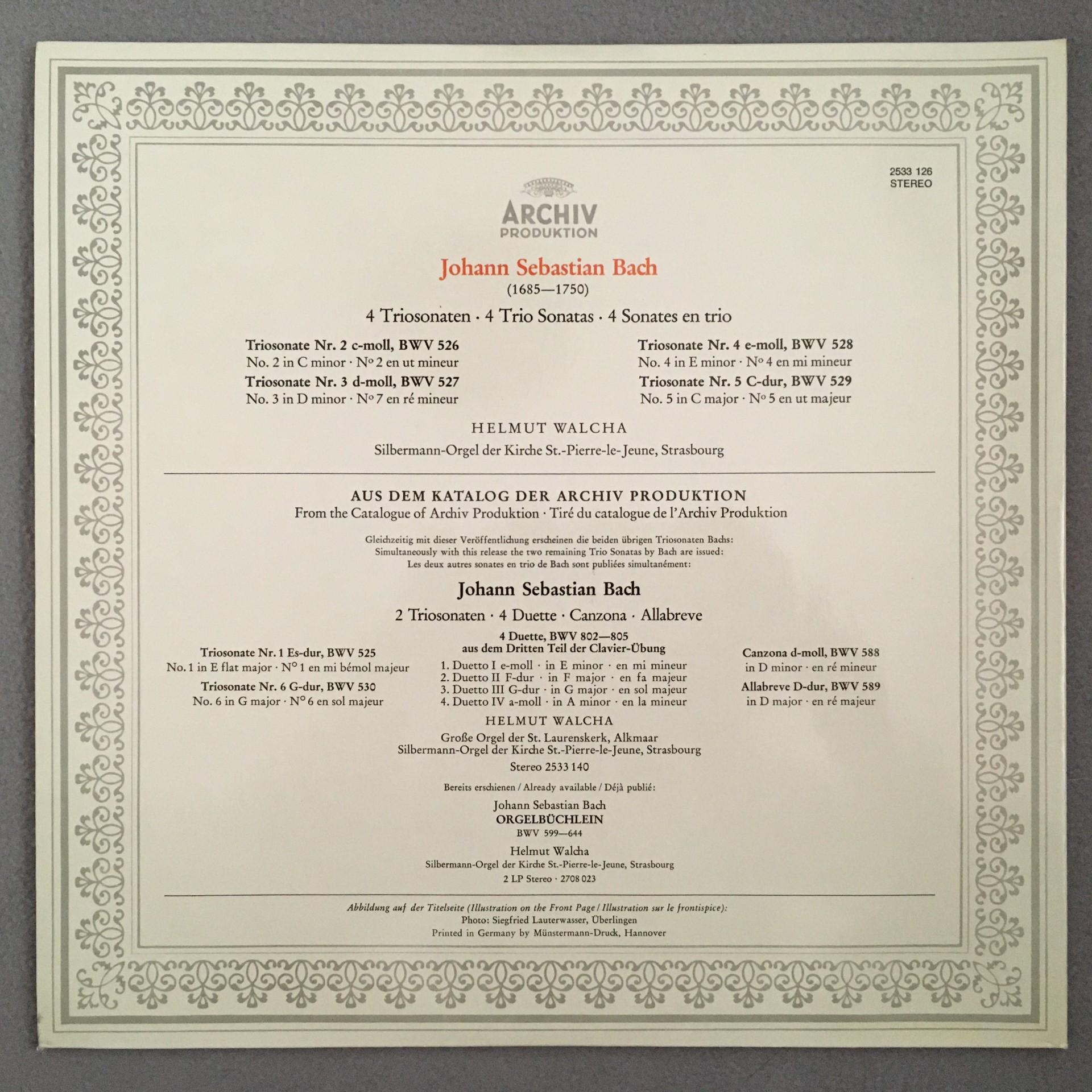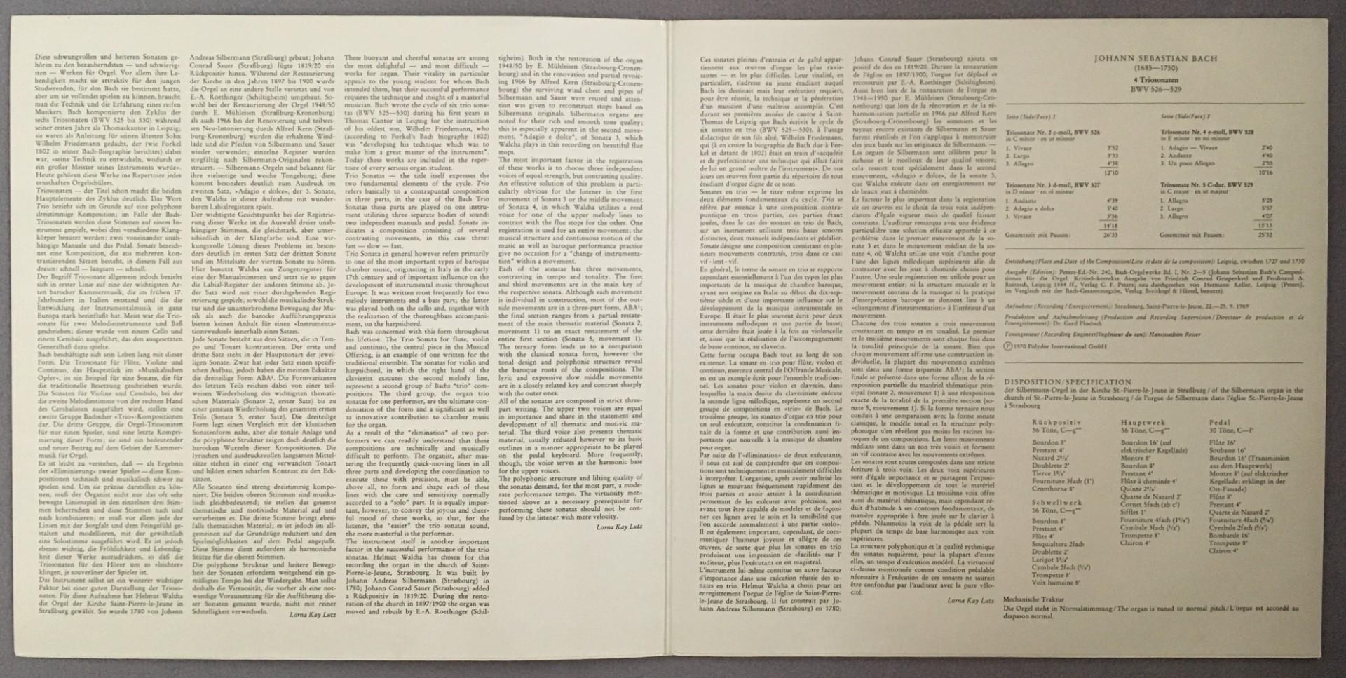 N608 Bach 4 Trio Sonatas Walcha Organ DGG Archiv 2533 126 Stereo