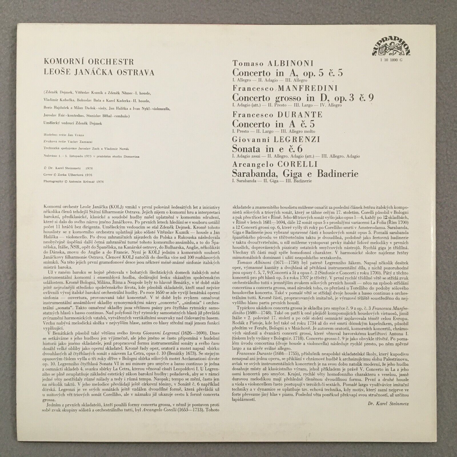 S176 Albinoni Manfredini Durant Concertos Janacka Supraphon 1 10 1890 G Stereo