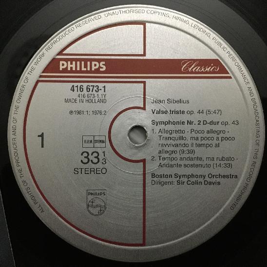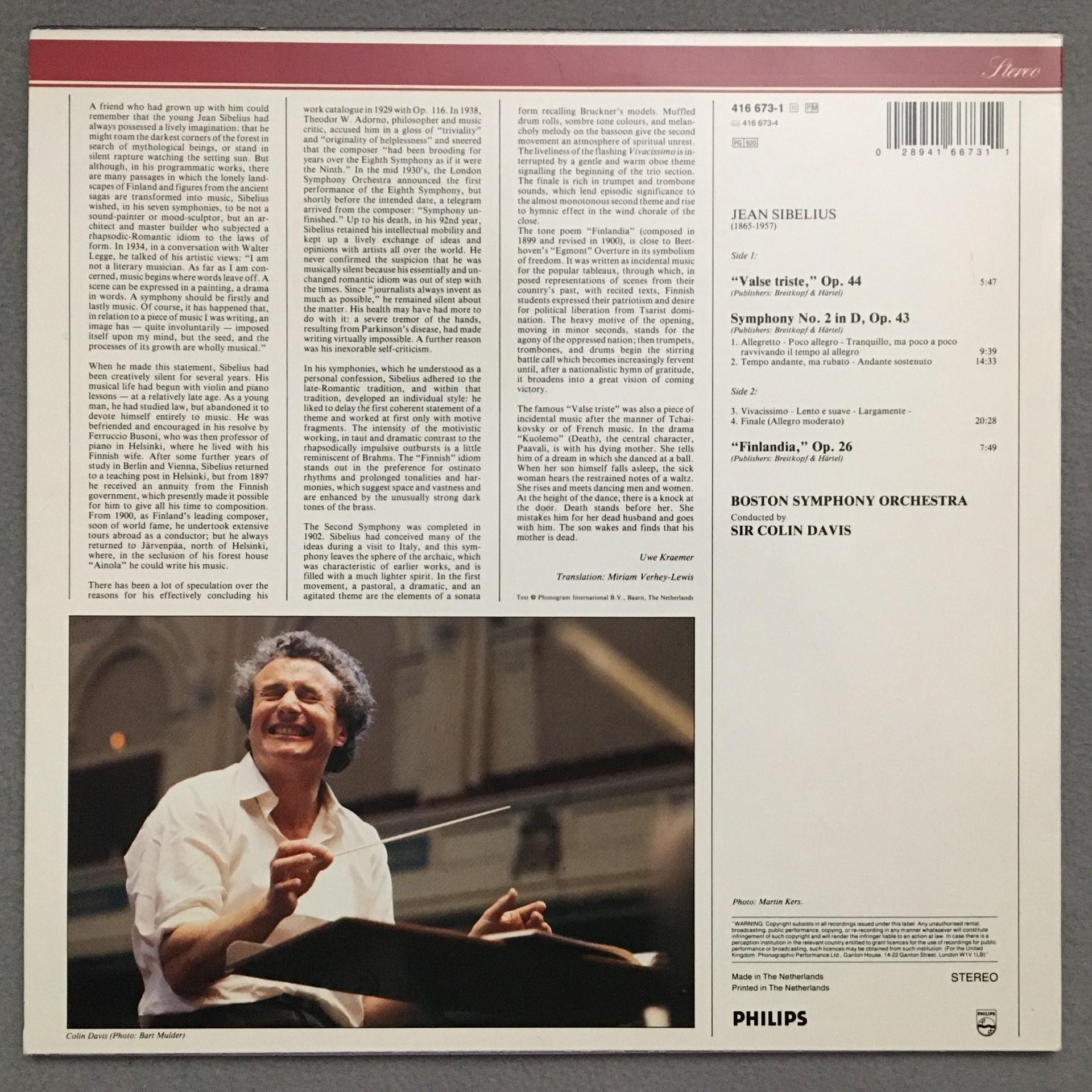 N619 Sibelius Symphony No.2 Davis Philips 416 673-1 Stereo