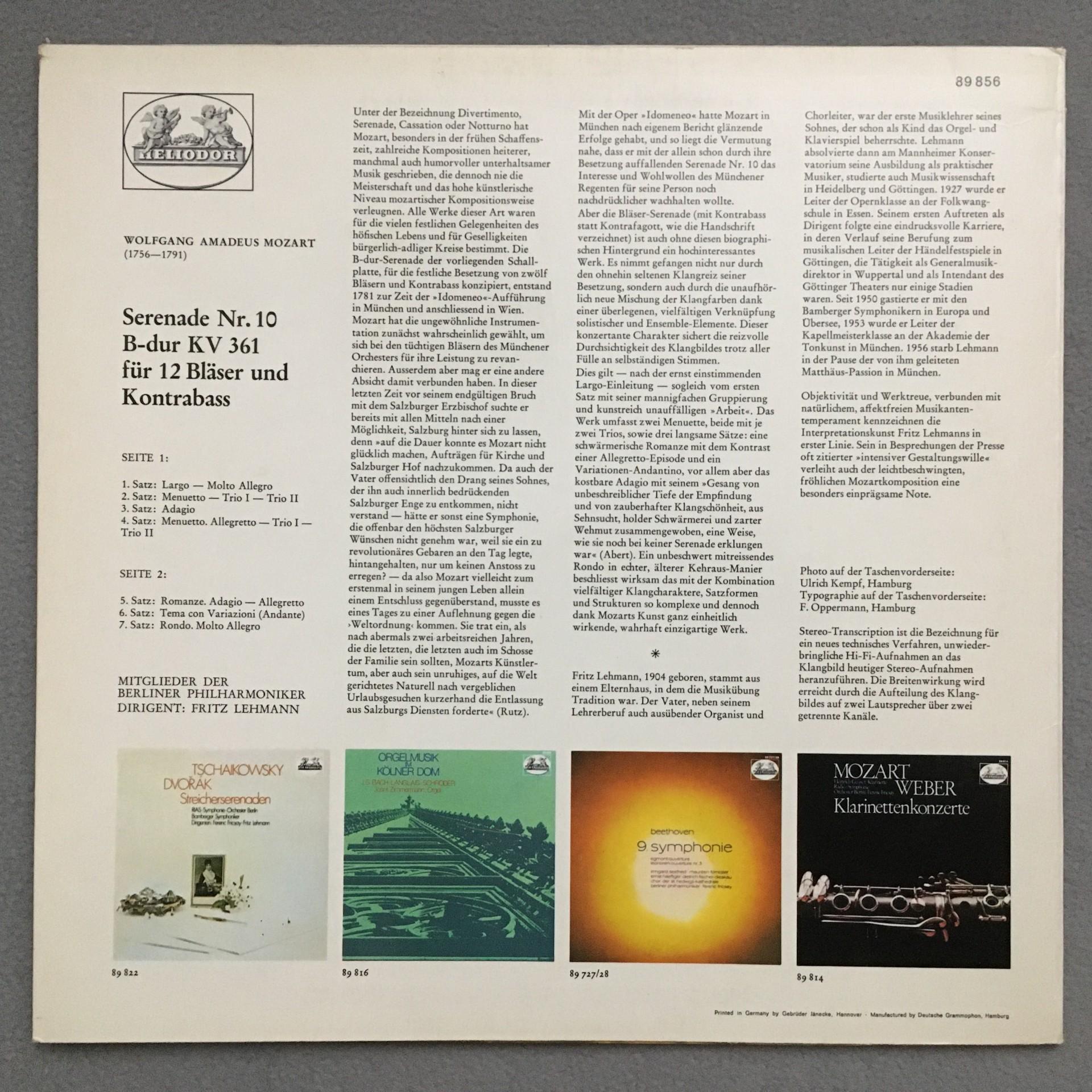 N625 Mozart Wind Serenade Lehmann Members of BPO Heliodor 89 856 Stereo