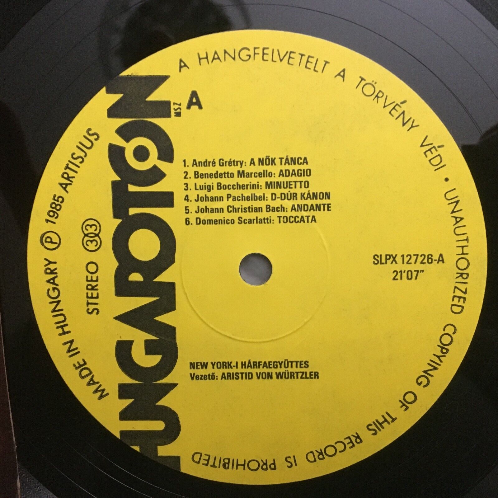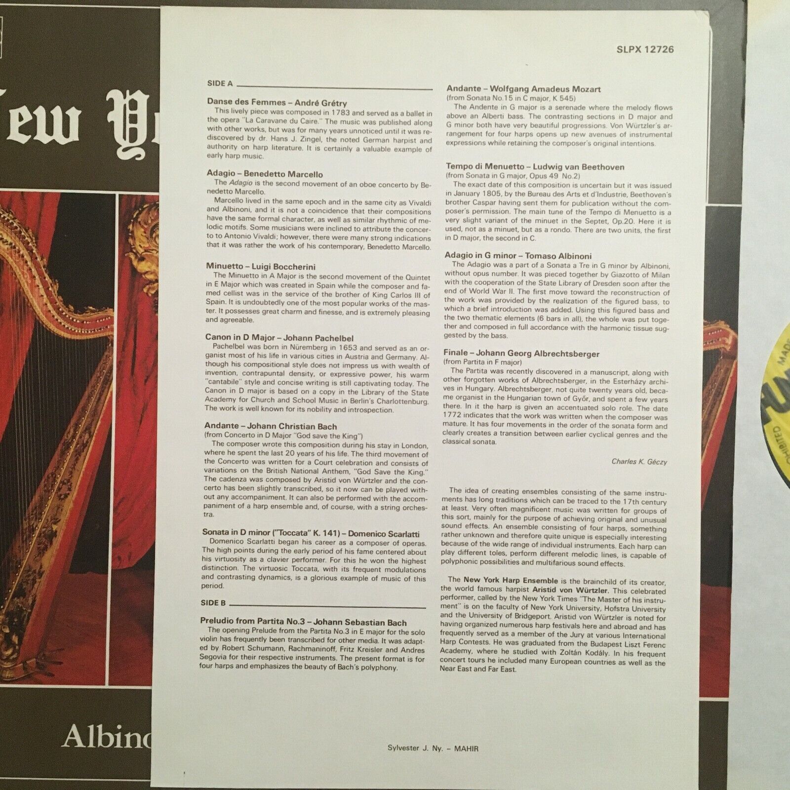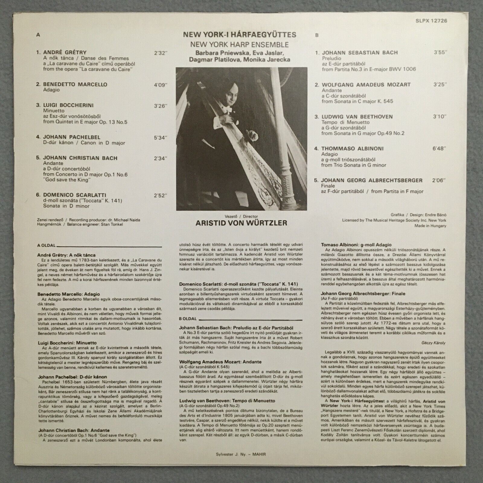 S174 Boccherini Bach Mozart Harp Ensemble Würtzler Hungaroton SLPX 12726 Stereo
