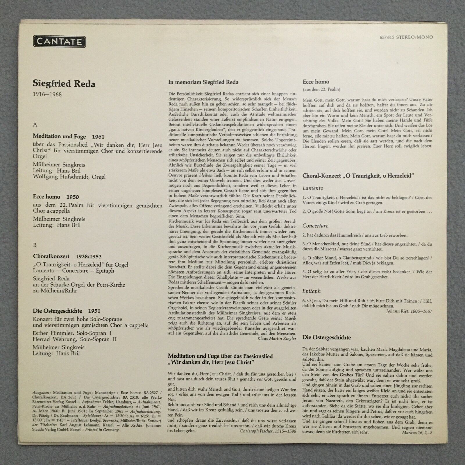 S172 Siegfried Reda Spiritual Music Cantate 657615 Stereo