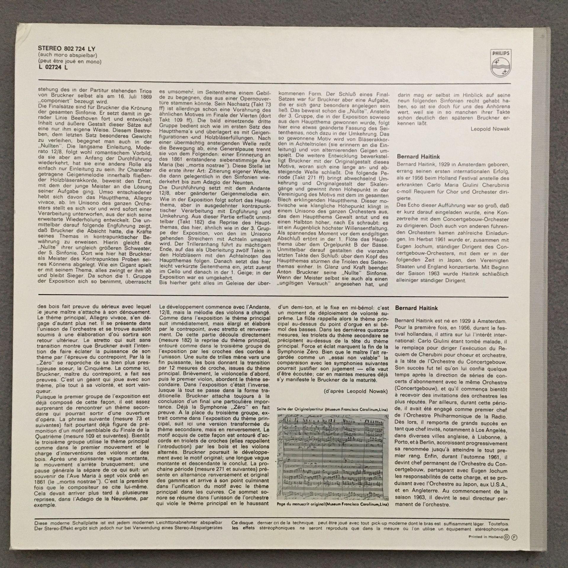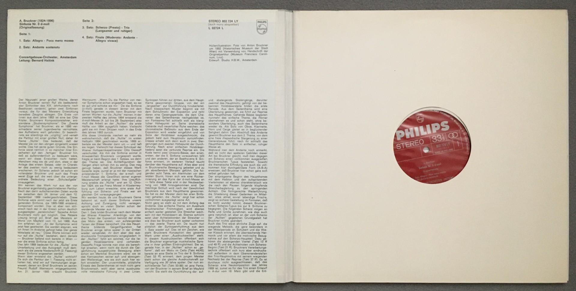 N632 Bruckner Symphony No.0 Haitink Philips 802 724 LY Stereo