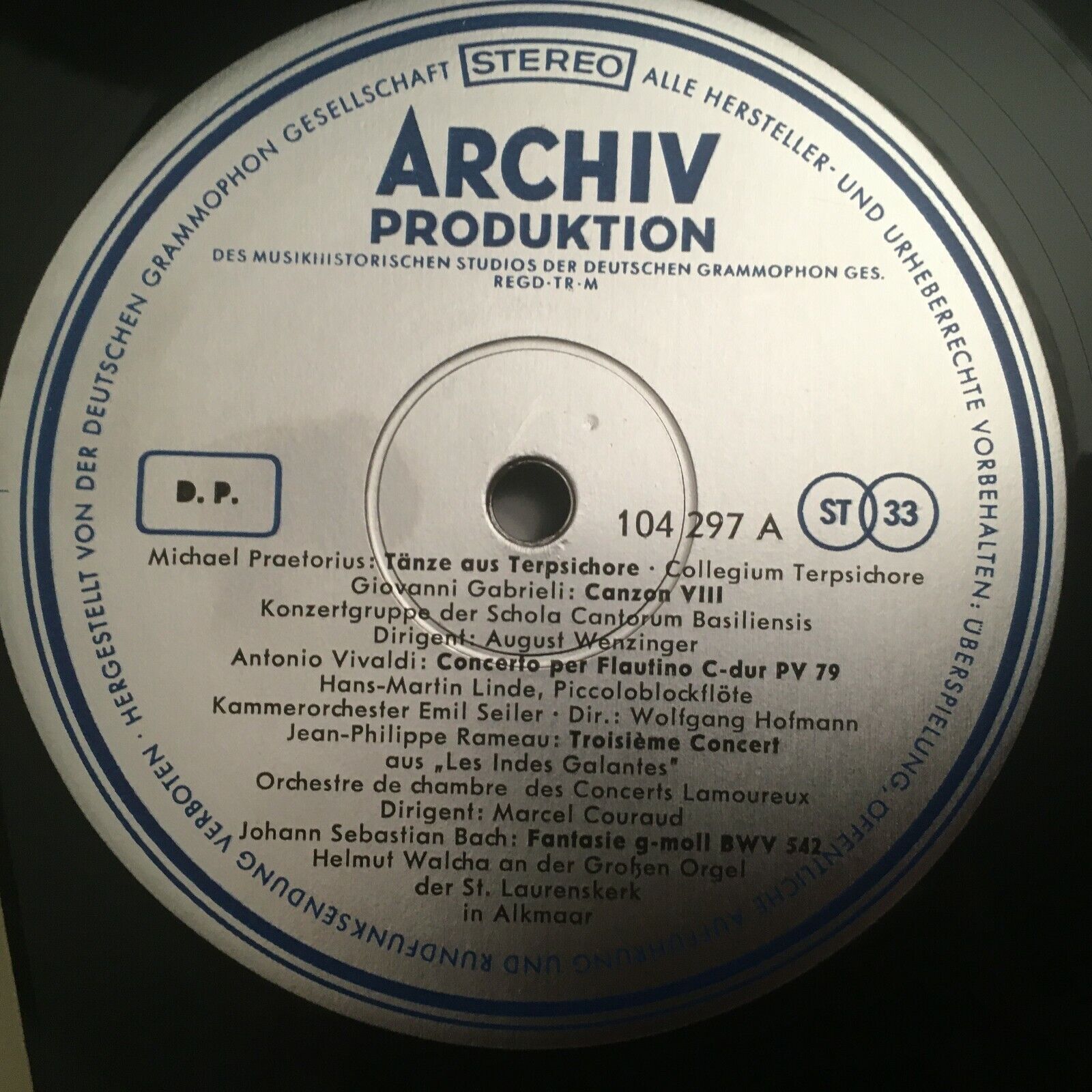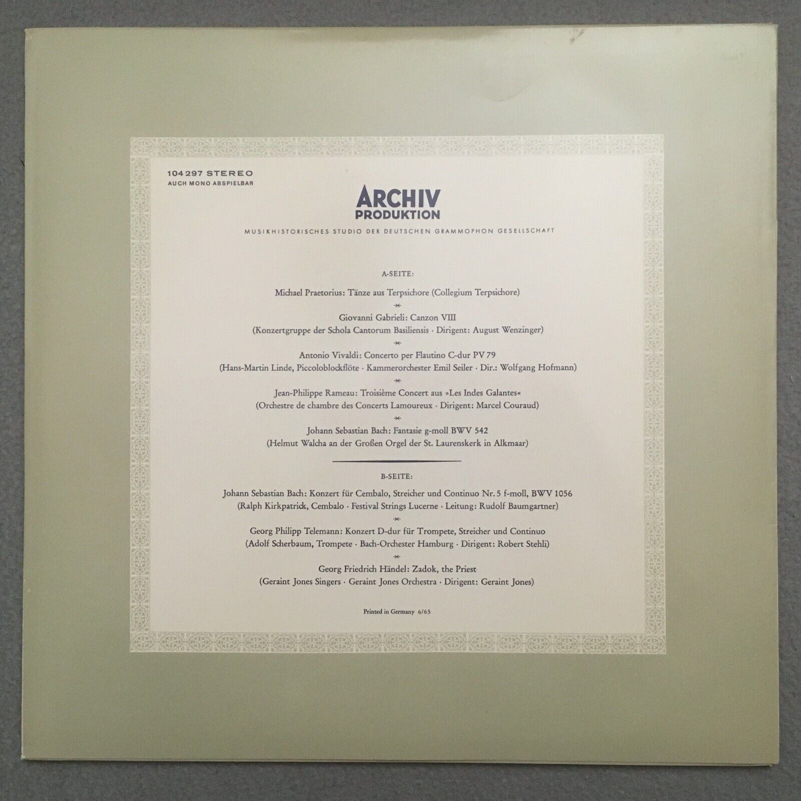 S934 Festive Baroque Music Vivaldi Bach Handel DGG Archiv 104 297 Stereo