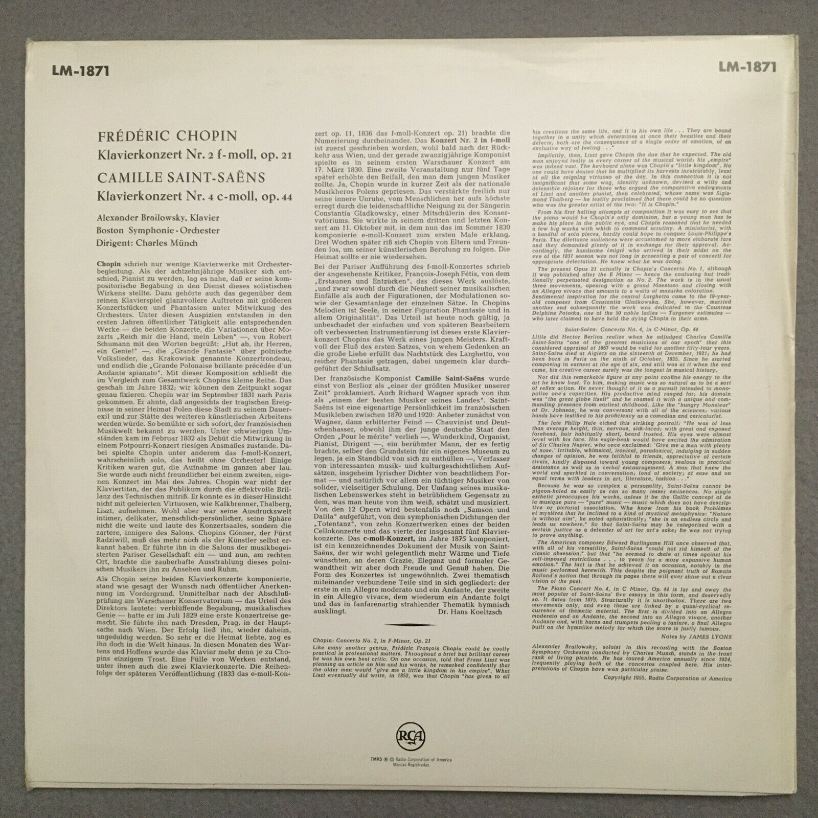 S933 Chopin Saint-Saens Piano Concertos Brailowsky Munch RCA LM-1871