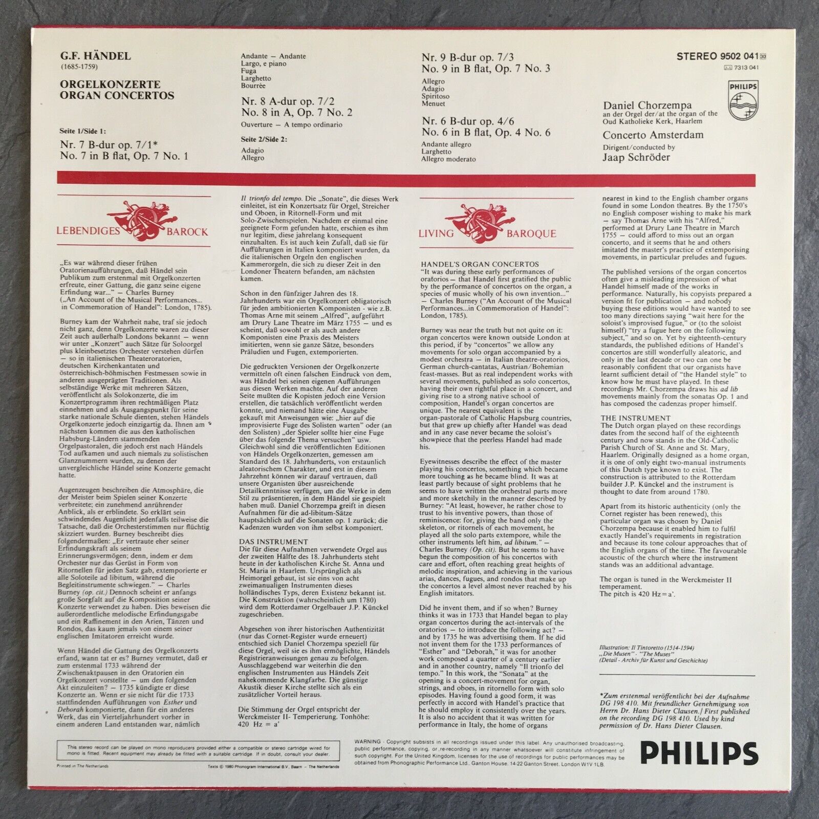 S300 Handel Organ Concertos No.6-9 Chorzempa Schröder Philips 9502 041 Stereo