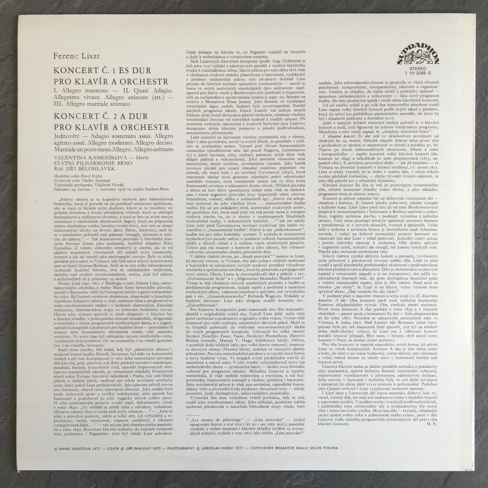 S297 Liszt Piano Concertos Kamenikova Belohlavek Supraphon 1 10 2085 G Stereo