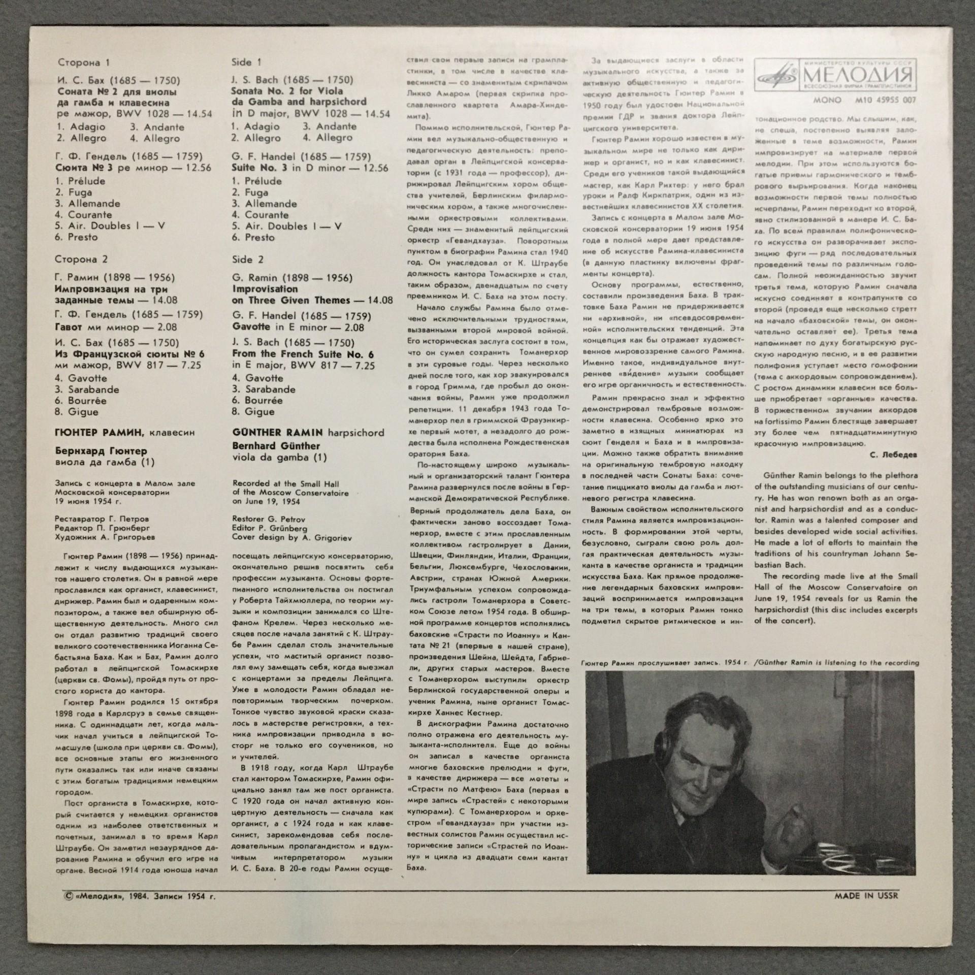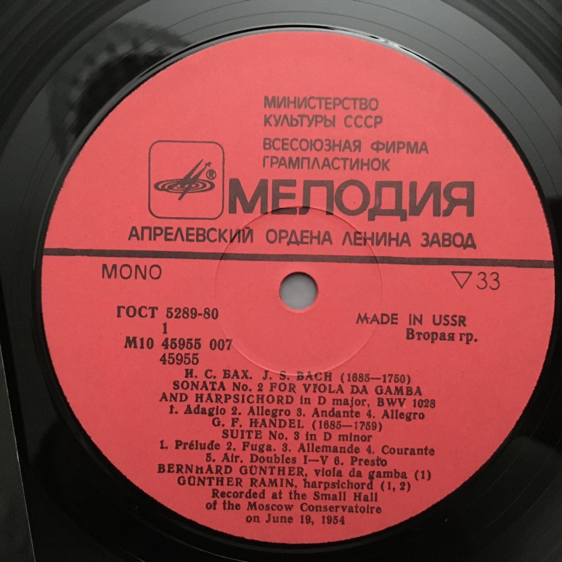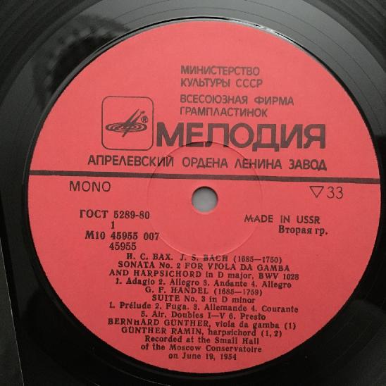 N644 Bach Sonata Handel Suite Ramin Harpsichord Günther Melodiya M10 45955 007