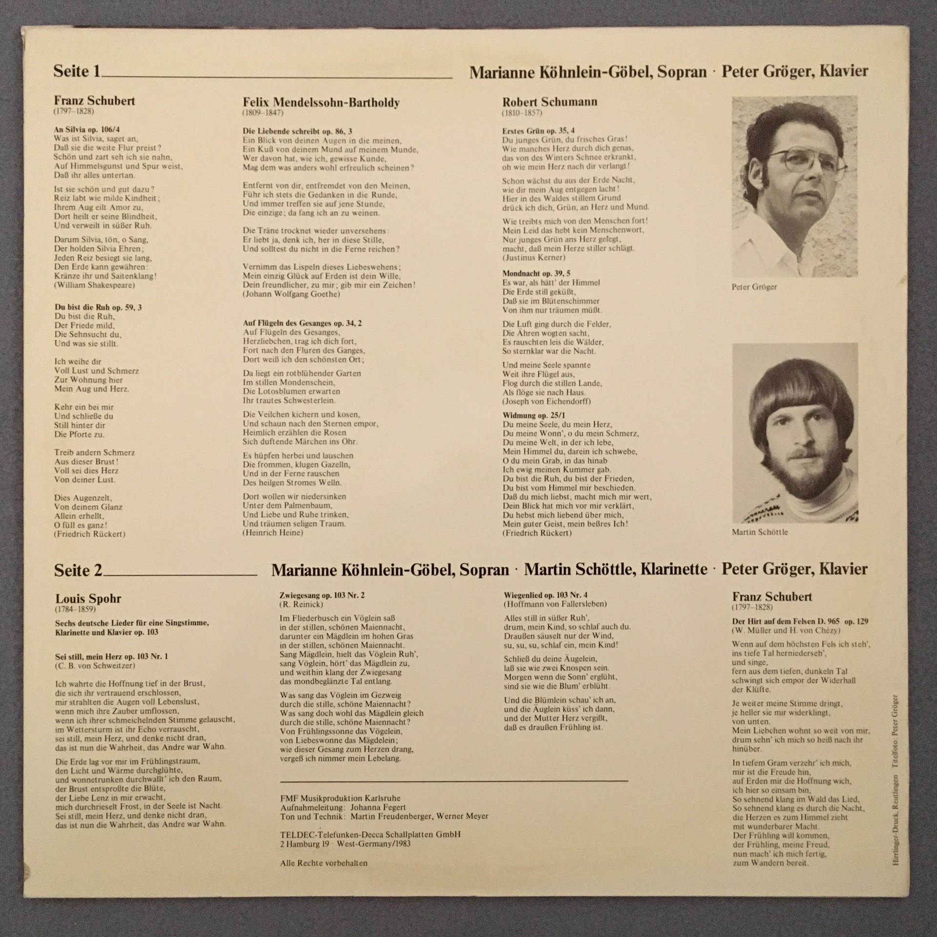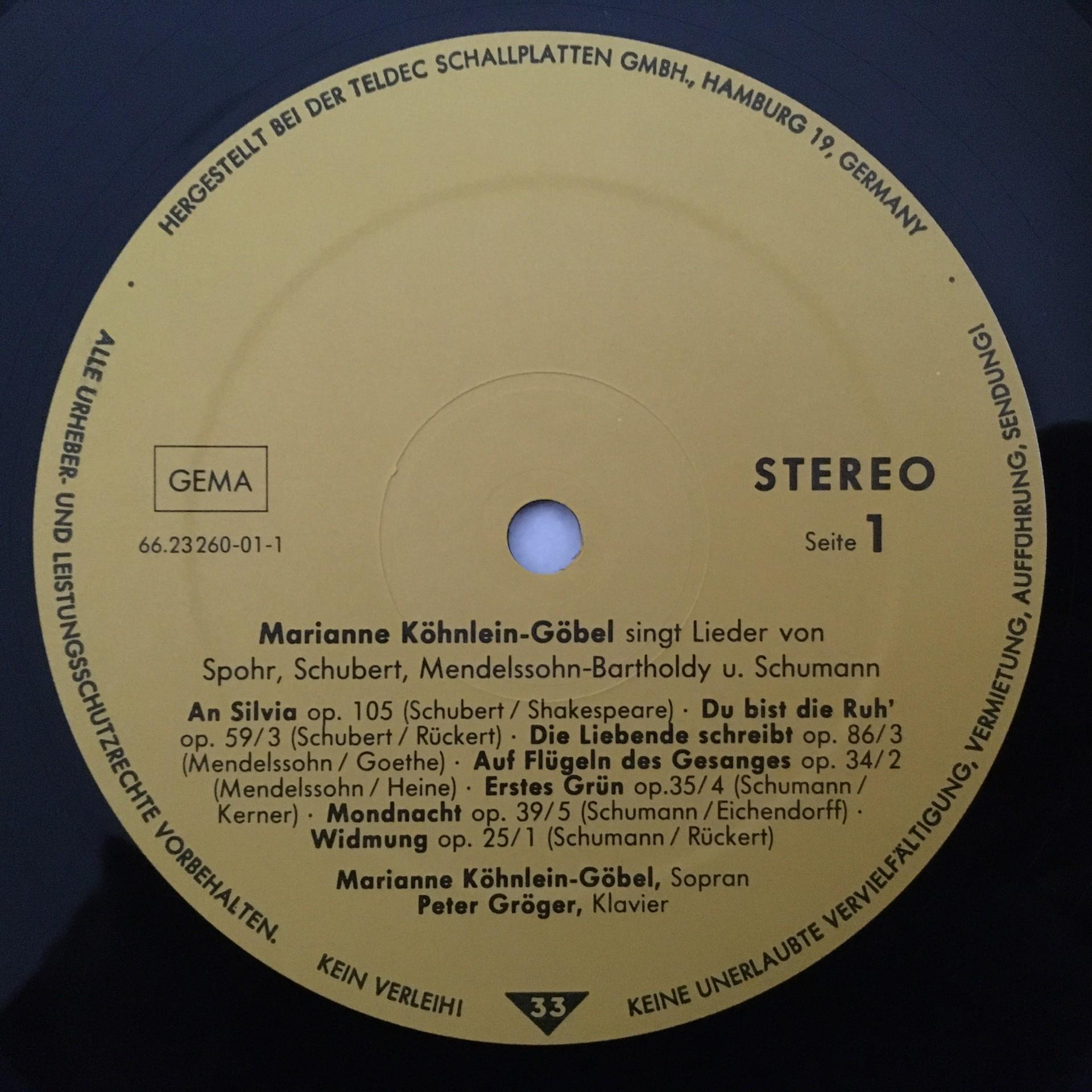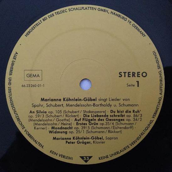 N645 Köhnlein-Göbel sings Songs Schubert Spohr Teldec 66.23260-01-1 Digital Ster