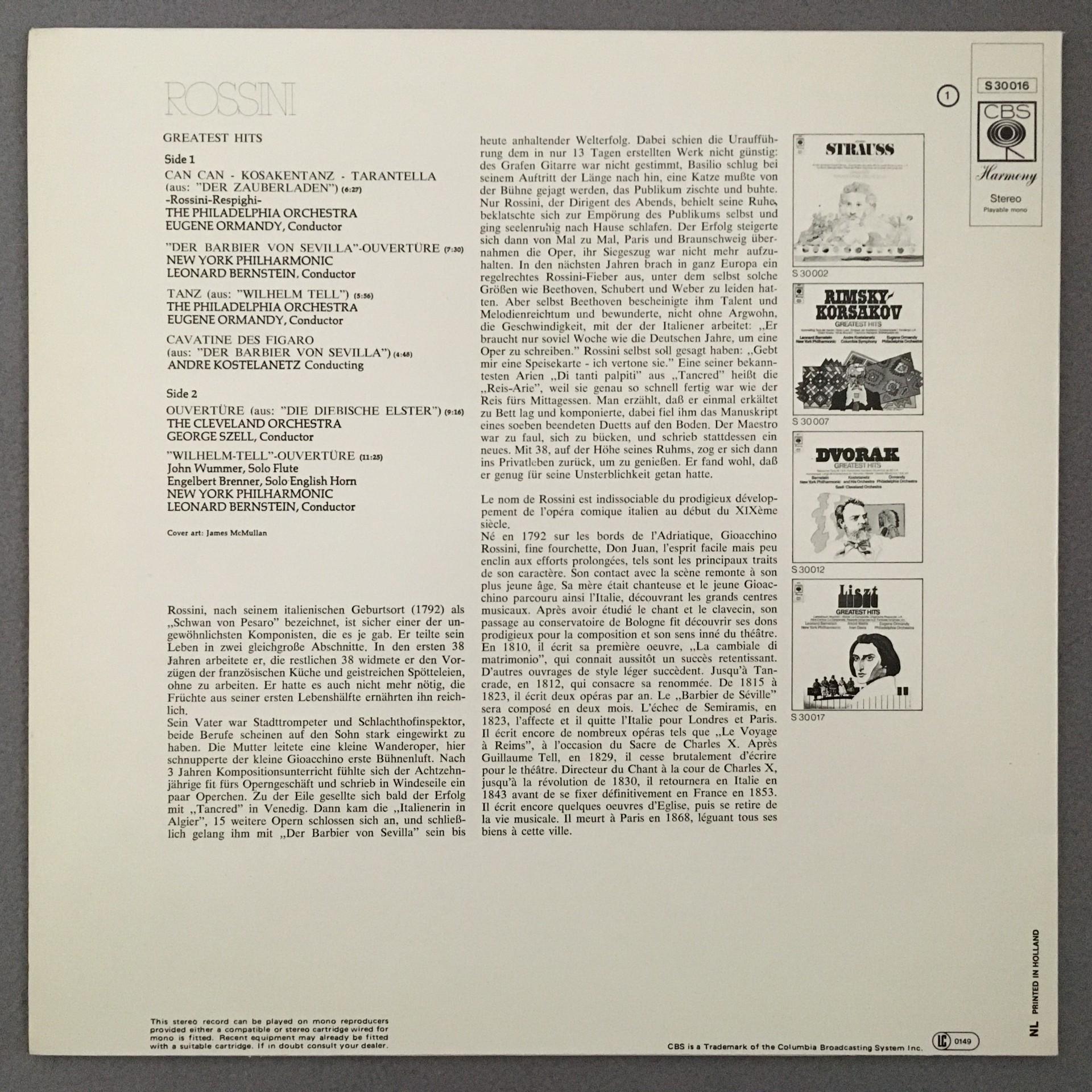 N651 Rossini Greatest Hits Bernstein Ormandy Szell CBS S 30 016 Stereo
