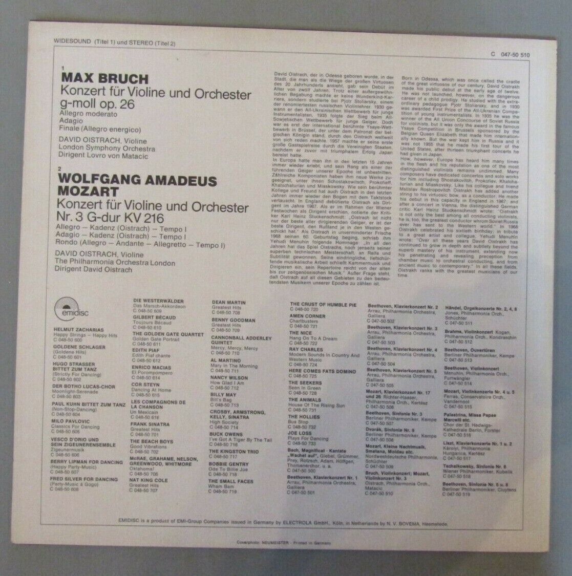J100 Bruch / Mozart Violin Concertos Oistrakh Matacic Emidisc C 047-50 510 Stere