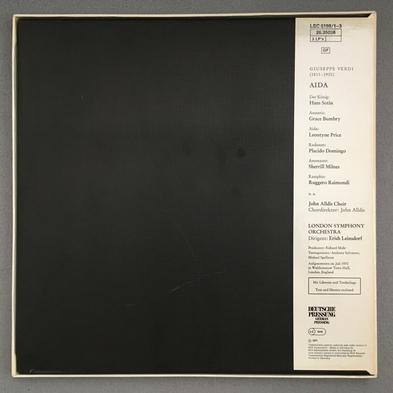 G346 Verdi Aida Price Domingo Milnes Bumbry Leinsdorf LSO 3LP RCA LSC-6198 Ster