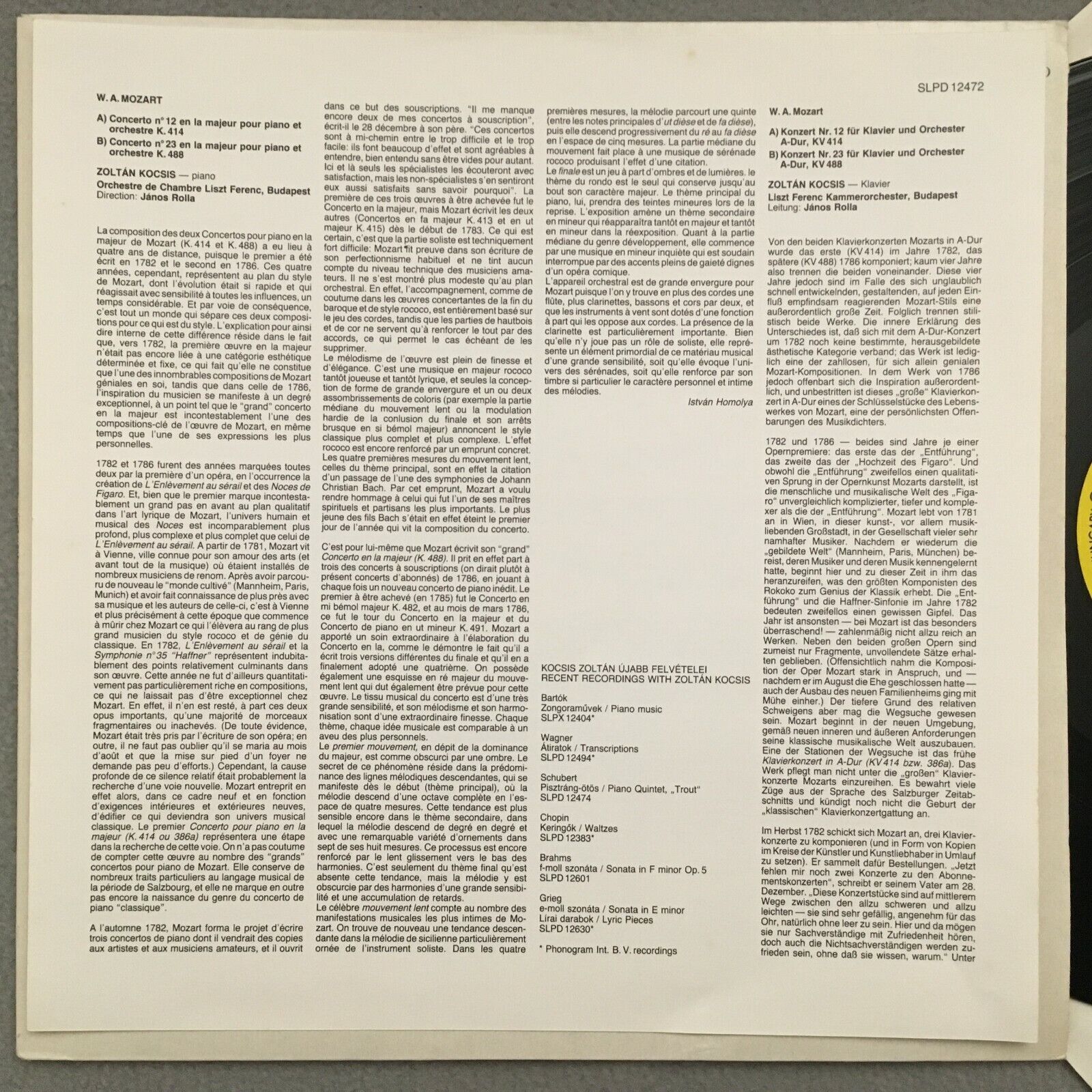 J157 Mozart Piano Concertos Kocsis Rolla Hungaroton SLPD 12472 Digital Stereo