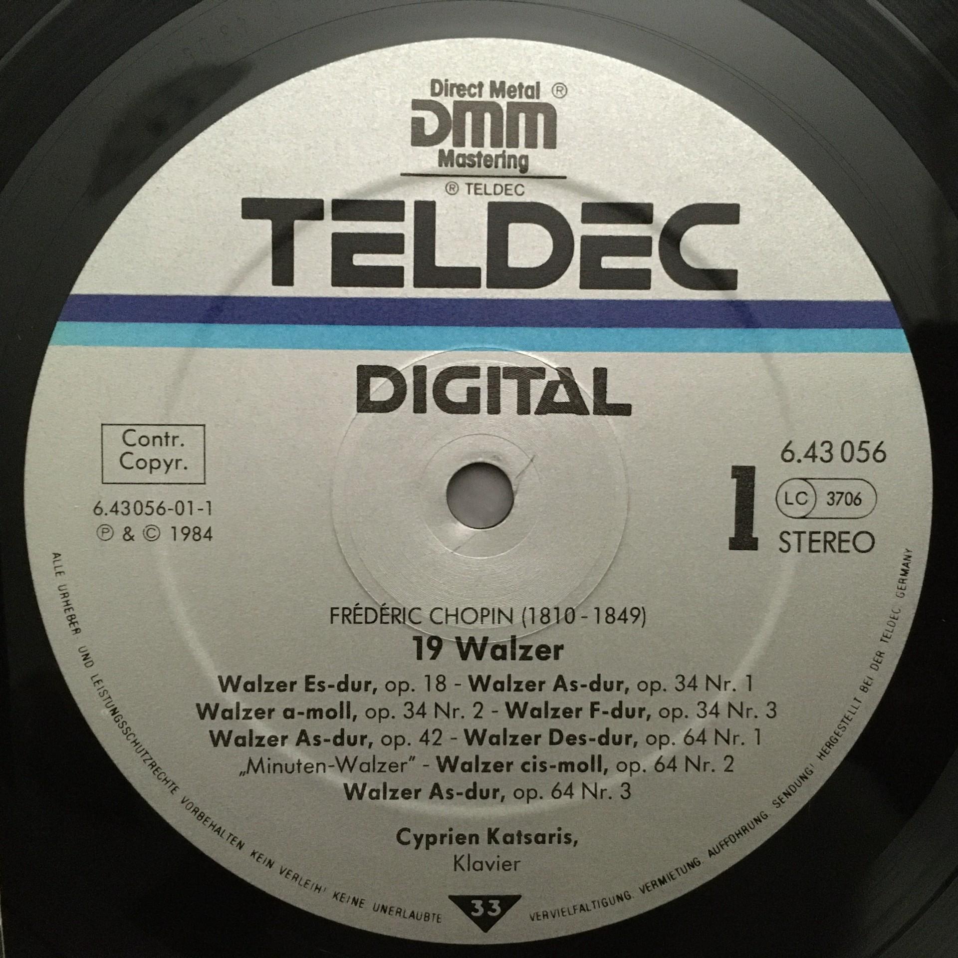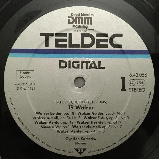 N666 Chopin 19 Waltzes Katsaris Piano Teldec 6.43056 AZ Digital Stereo