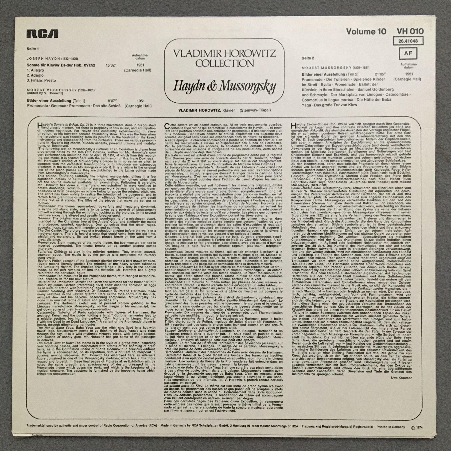 N673 Horowitz Collection Vol.10 Haydn Sonata Mussorgsky RCA VH 010