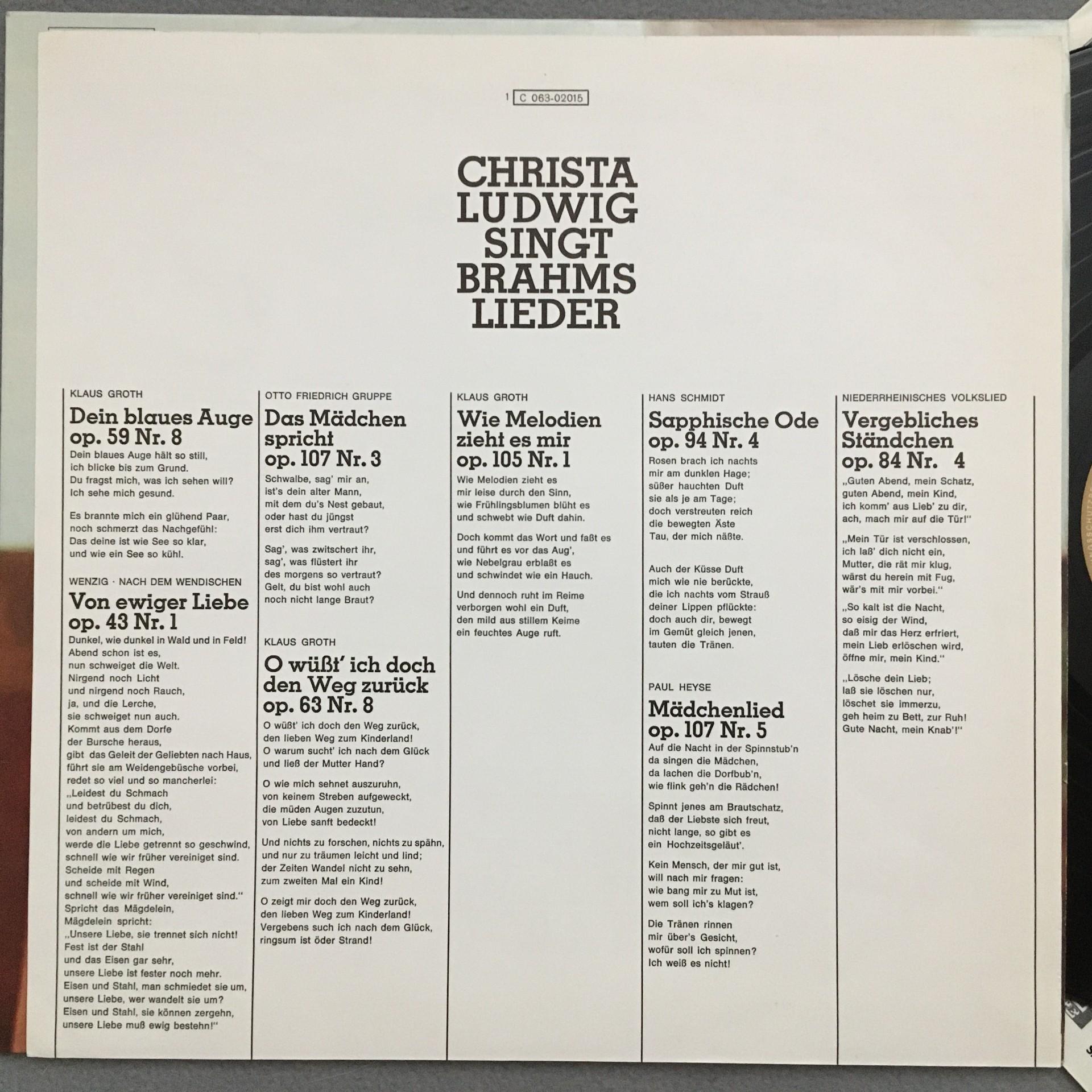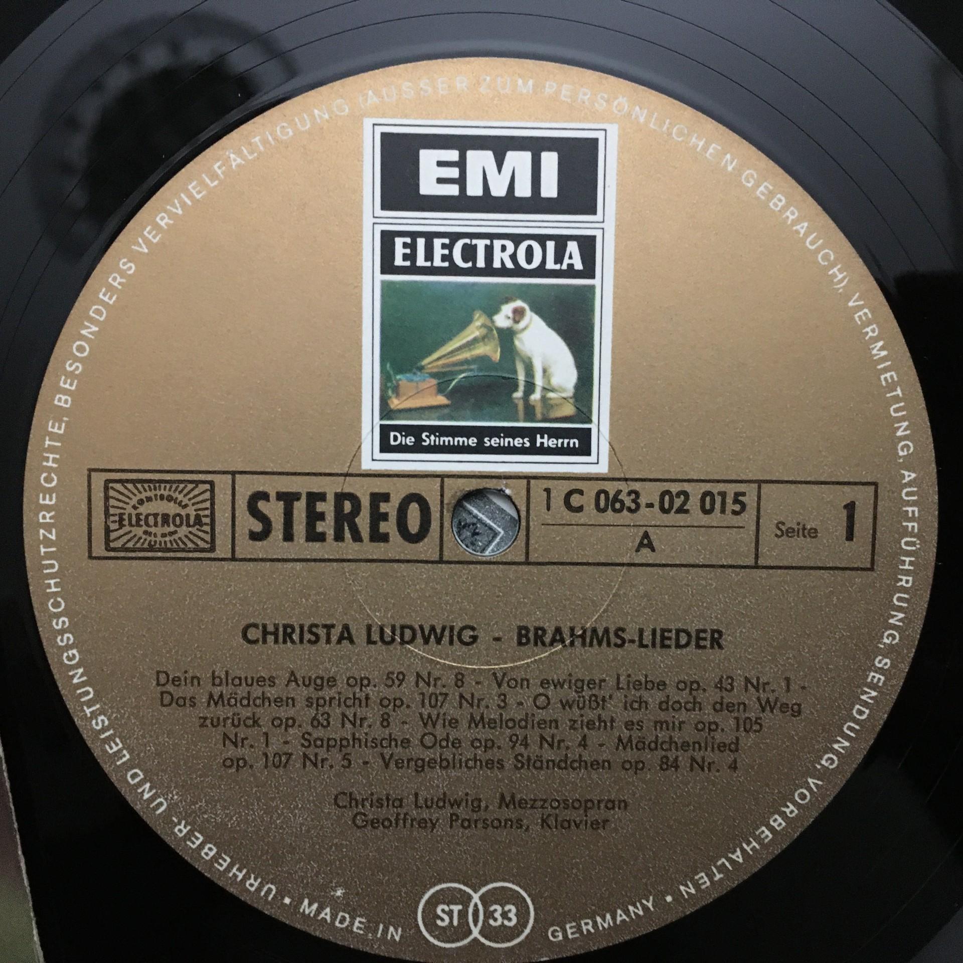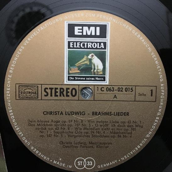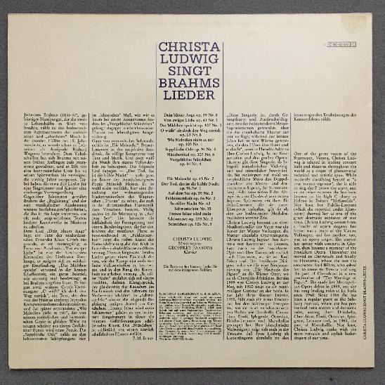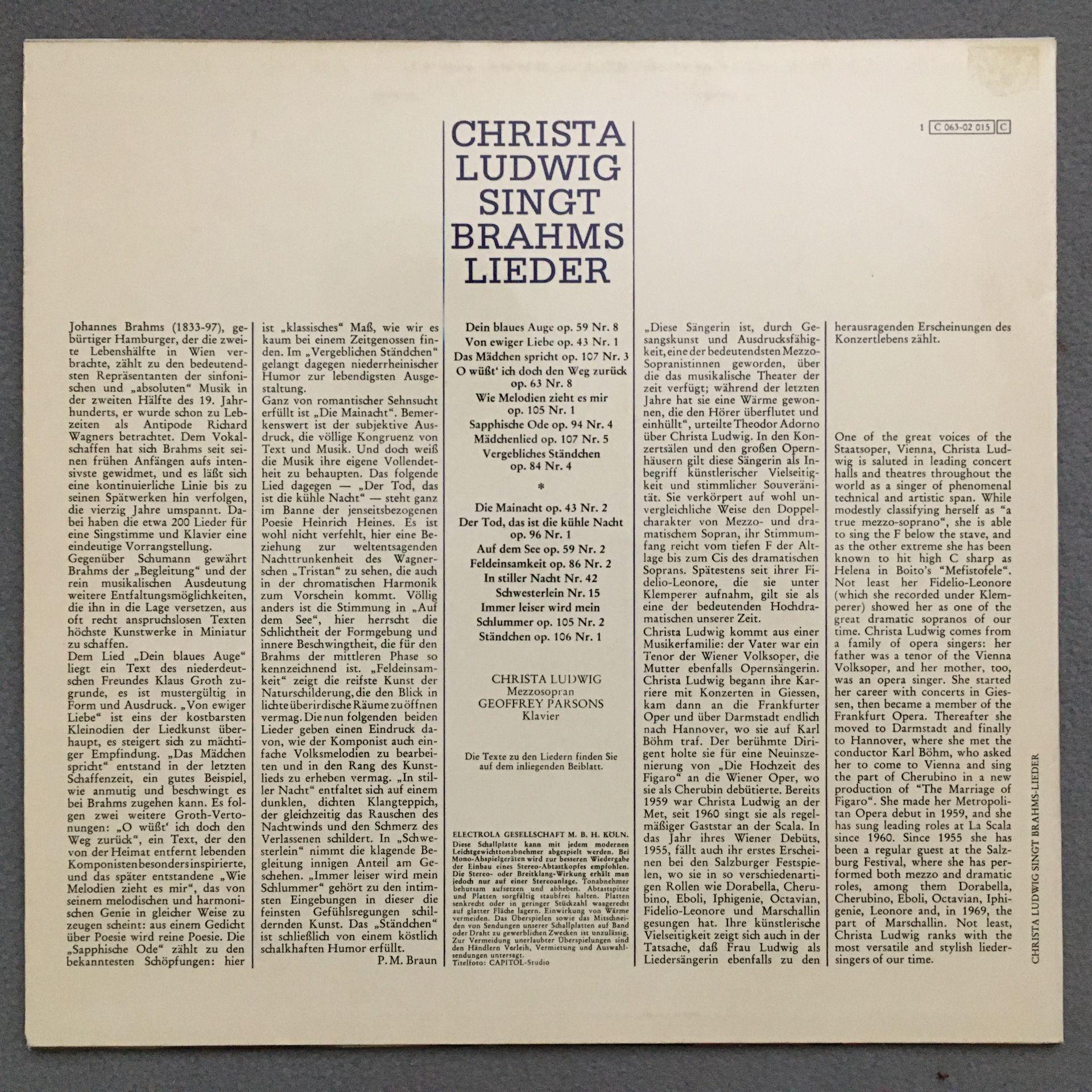 N678 Brahms Songs Ludwig Parsons Piano EMI 1 C 063-02 015 Stereo