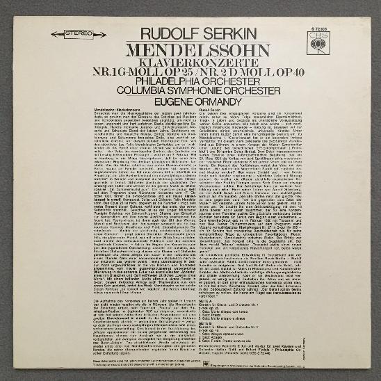 N679 Mendelssohn Piano Concertos No.1 & 2 Serkin Ormandy CBS S 72 303 Stereo