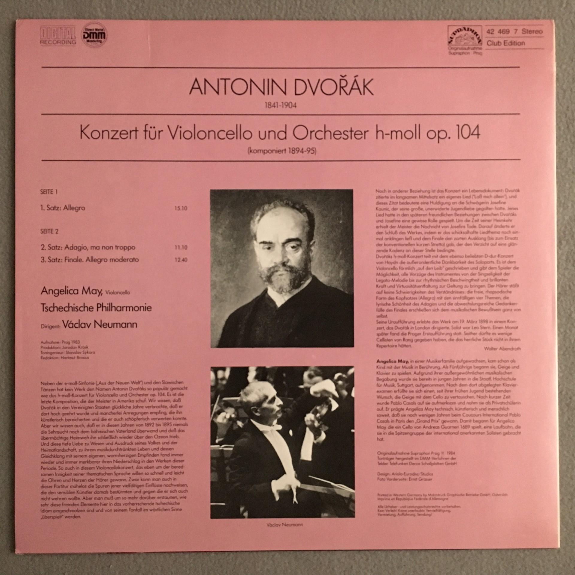 N690 Dvorak Cello Concerto Angelica May Neumann Supraphon 42 469 7 Digital Ster