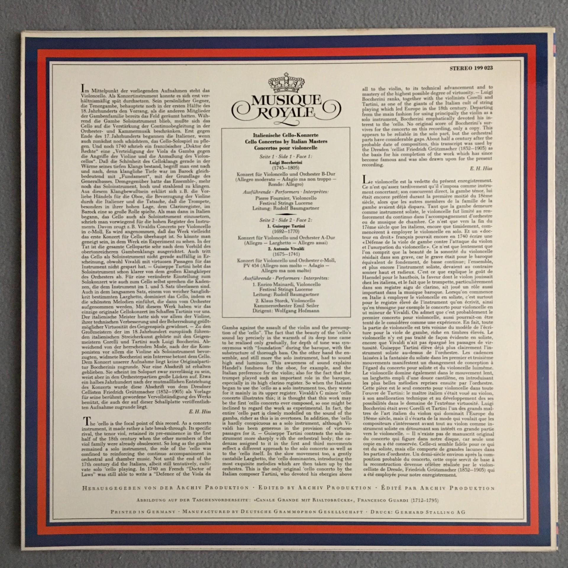 N691 Italian Cello Concertos Fournier Mainardi Storck Musique Royale 199 023 St