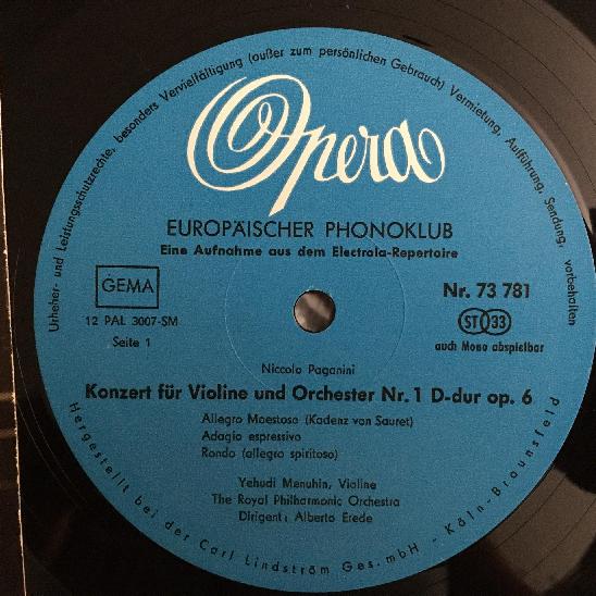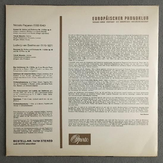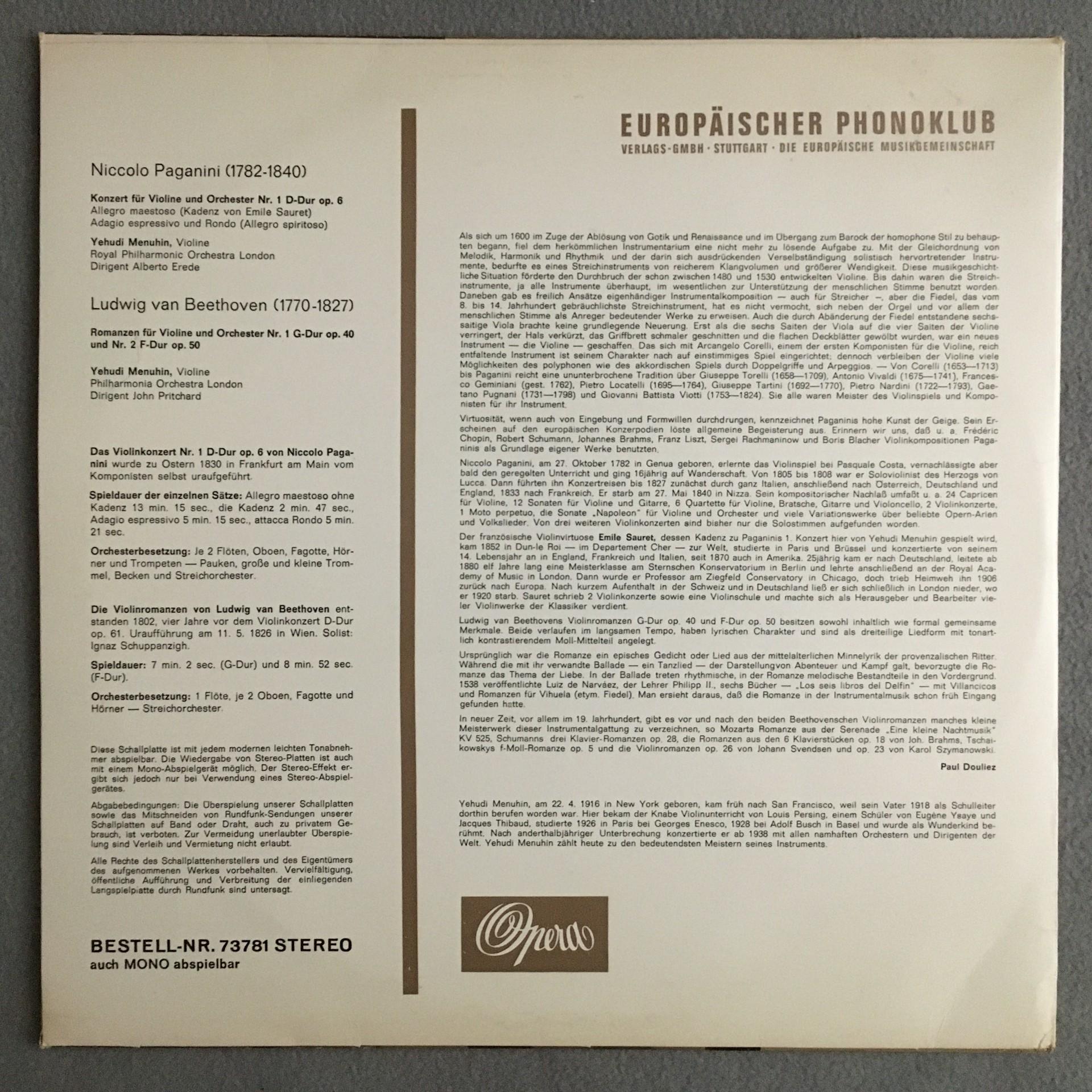 N694 Paganini Violin Concerto Beethoven Menuhin Erede Opera 73781 Stereo