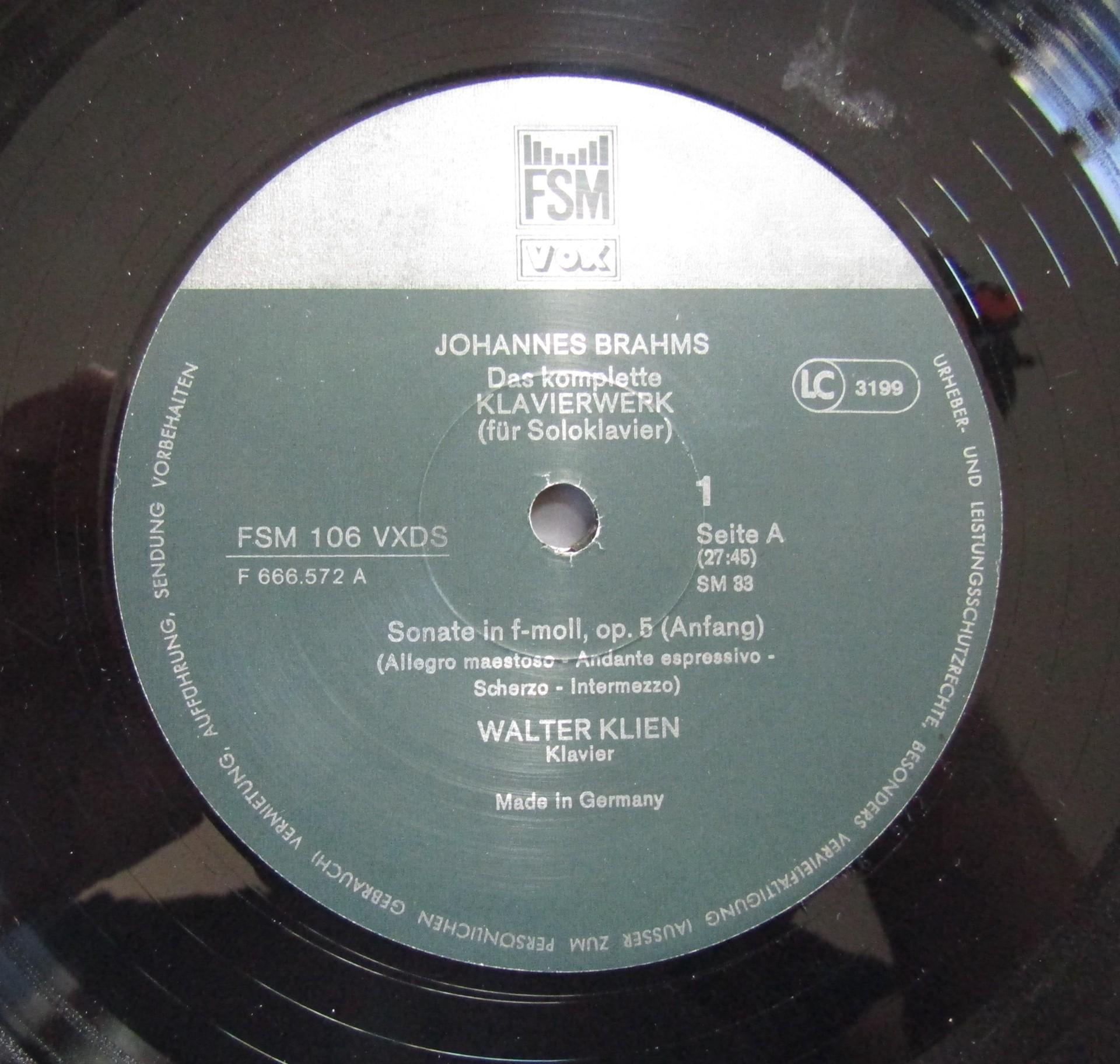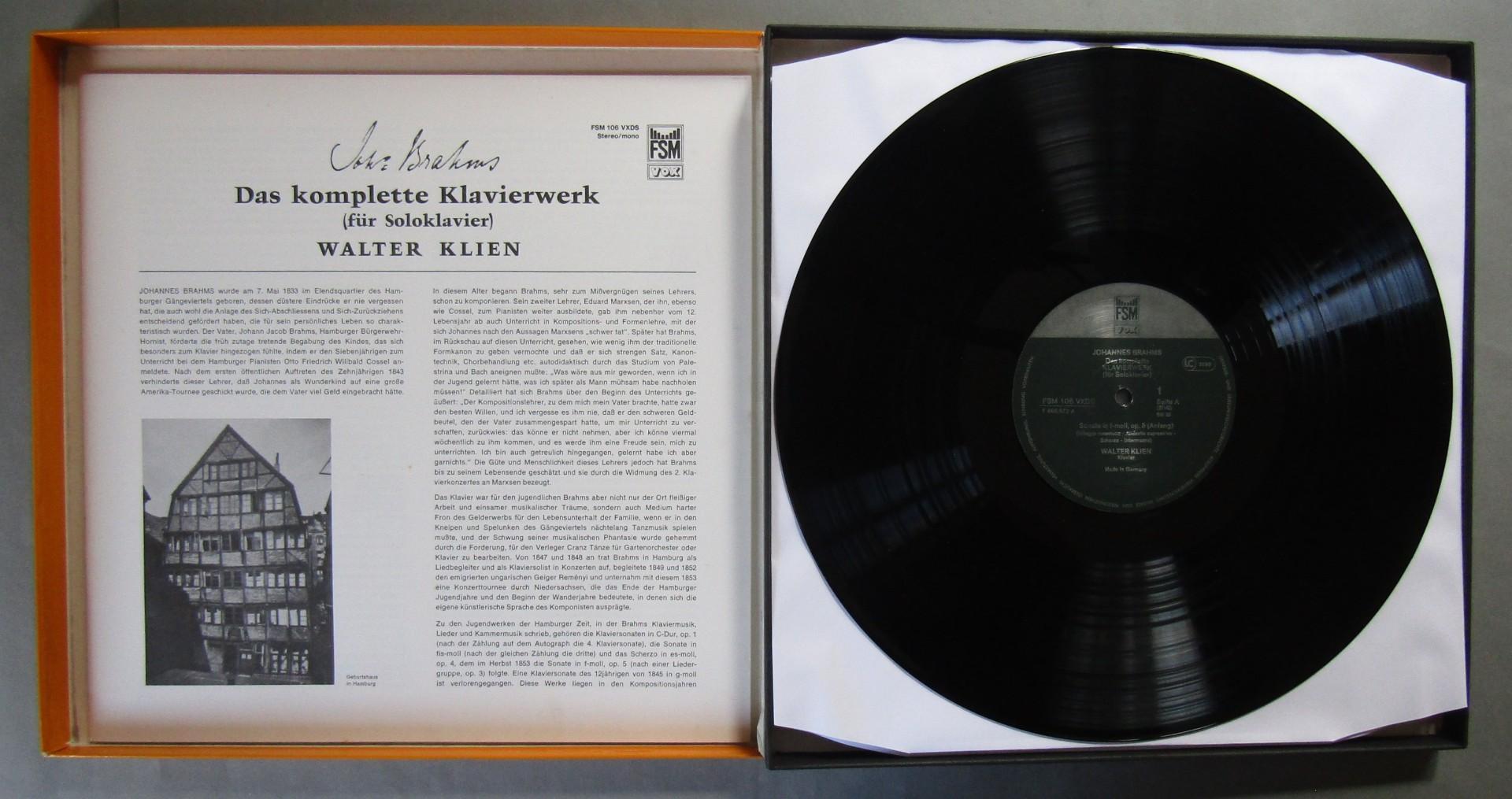 G399 Brahms The Complete Piano Work Walter Klien 6LP VOX FSM 106 VXDS Stereo