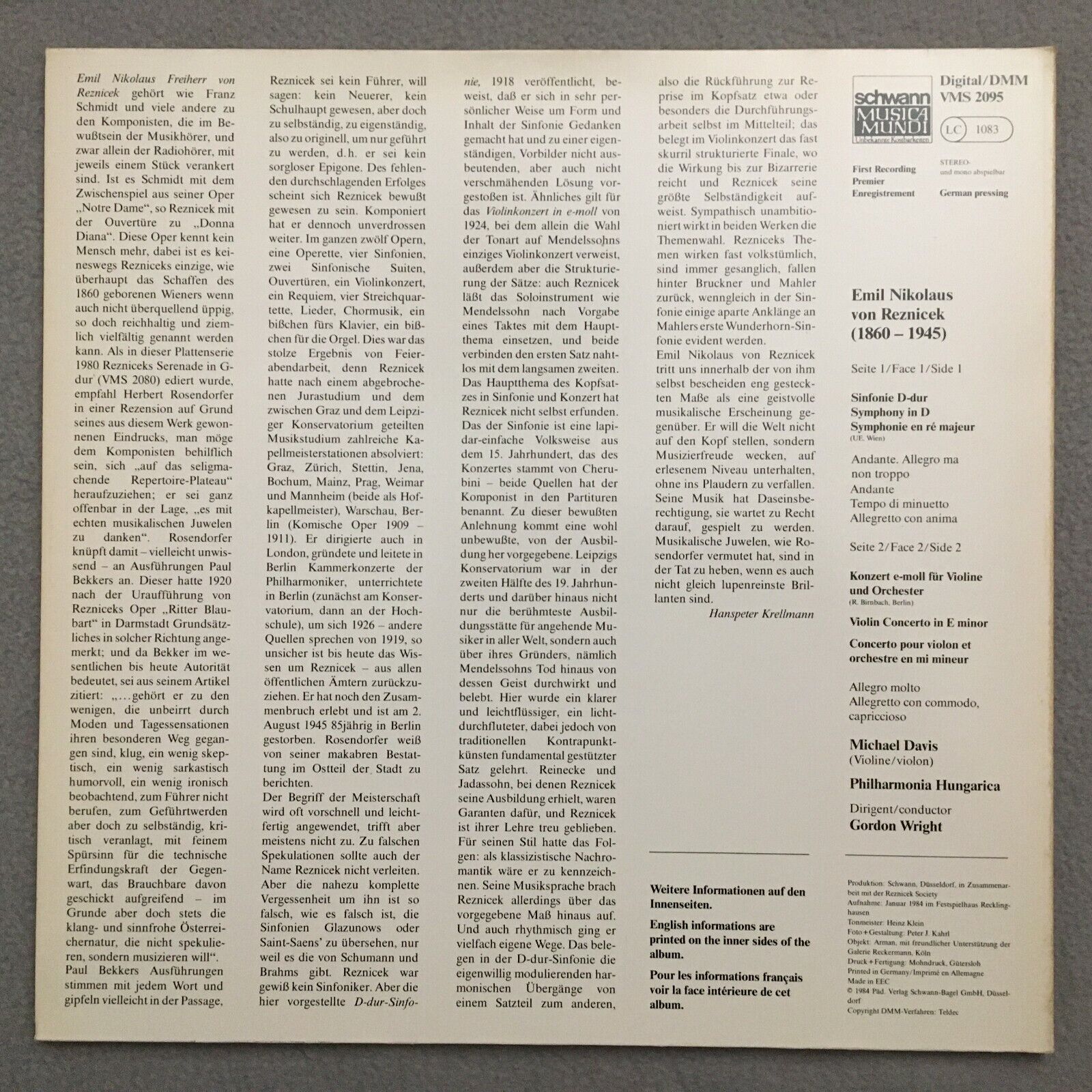 S926 Von Reznicek Symphony Concerto Davis Wright Schwann VMS 2095 Digital Stereo