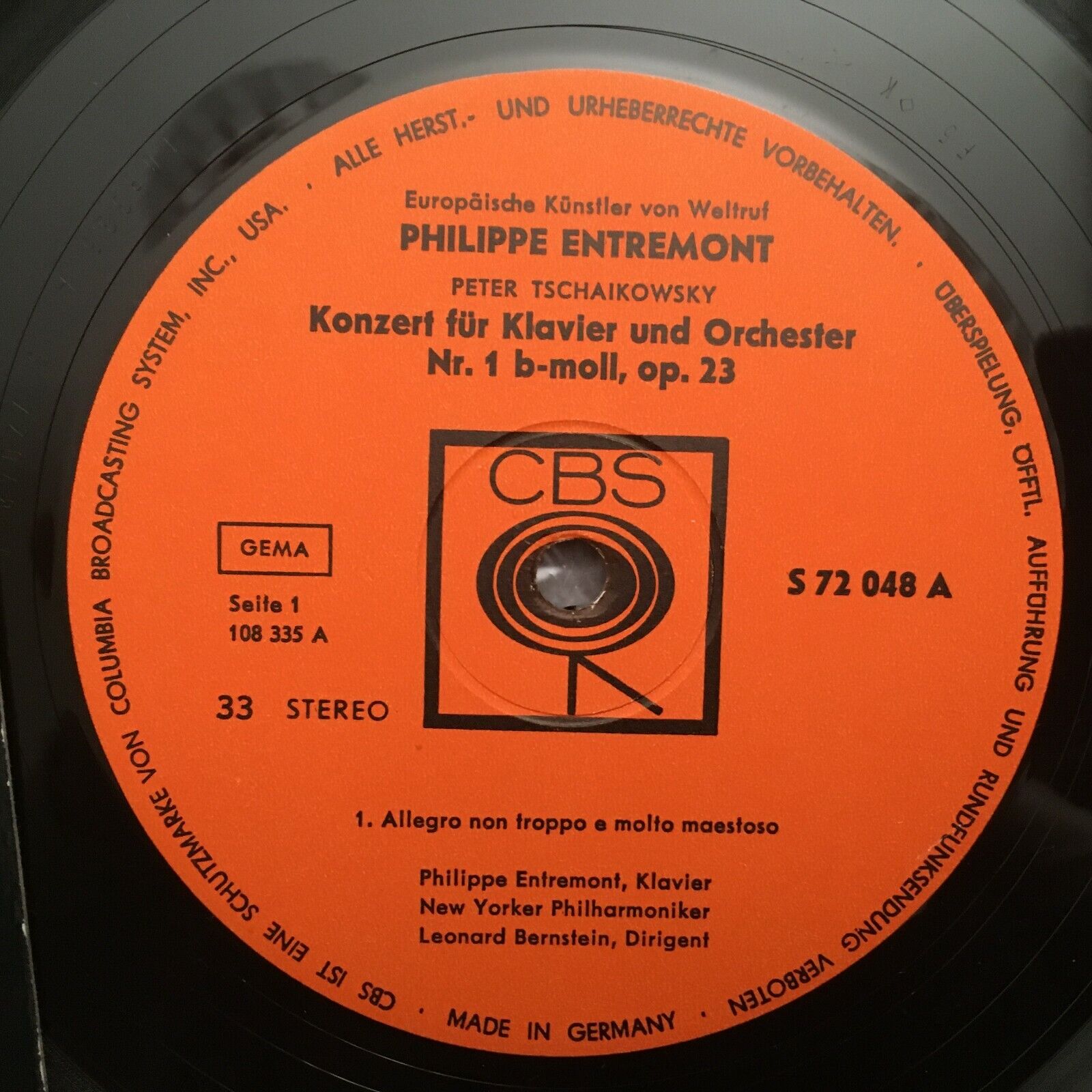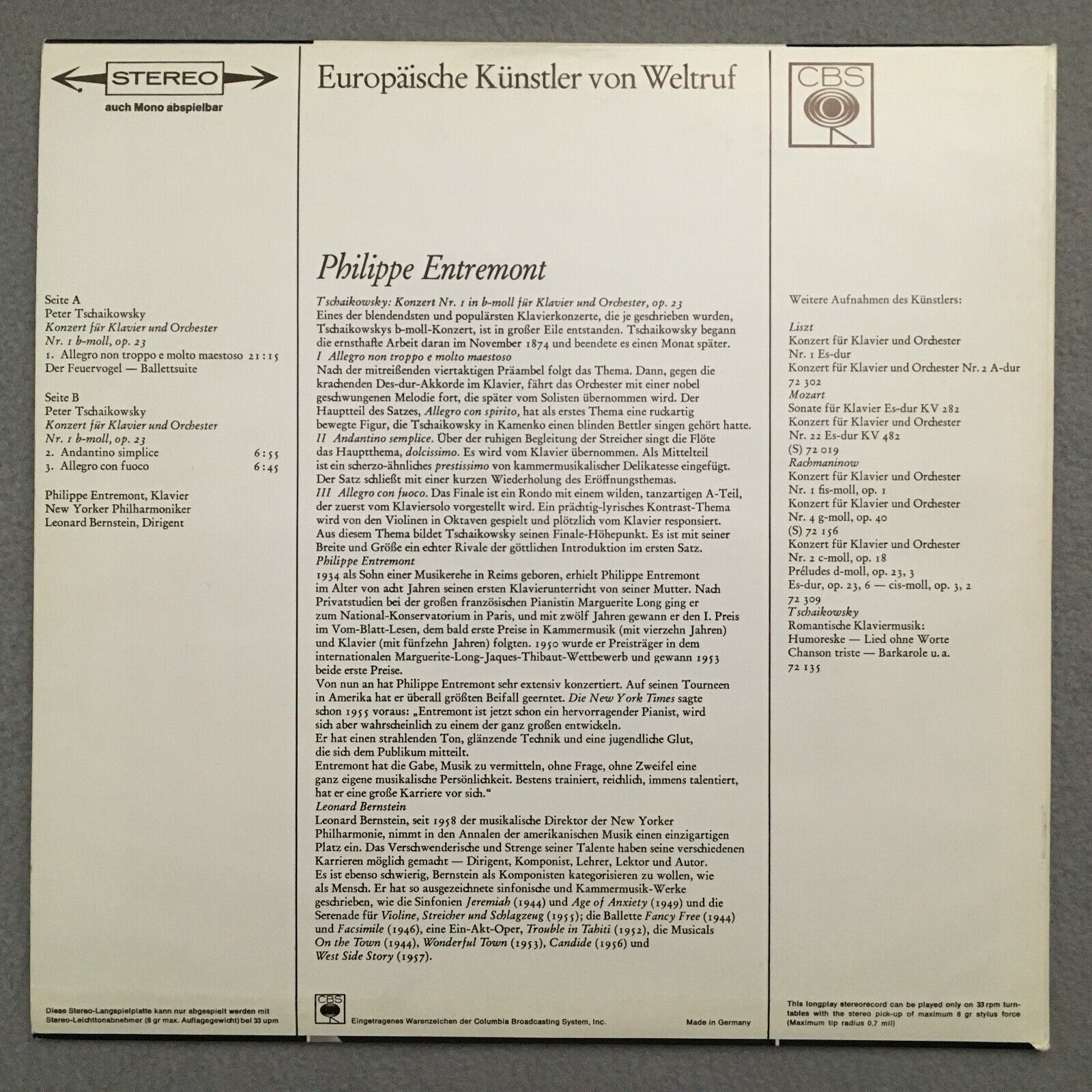 S922 Tchaikovsky Piano Concerto No.1 Entremont CBS S 72 048 Stereo