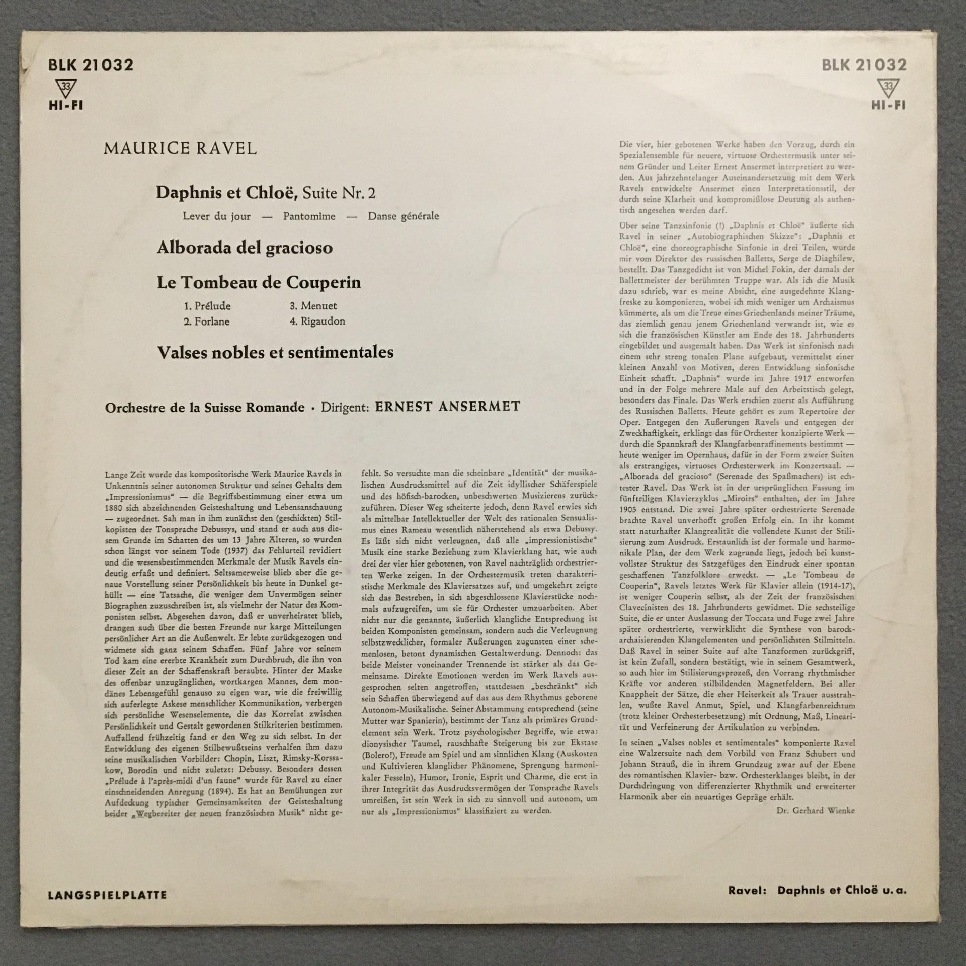 N711 Ravel Daphne & Chloe Valses Ansermet DECCA BLK 21 032