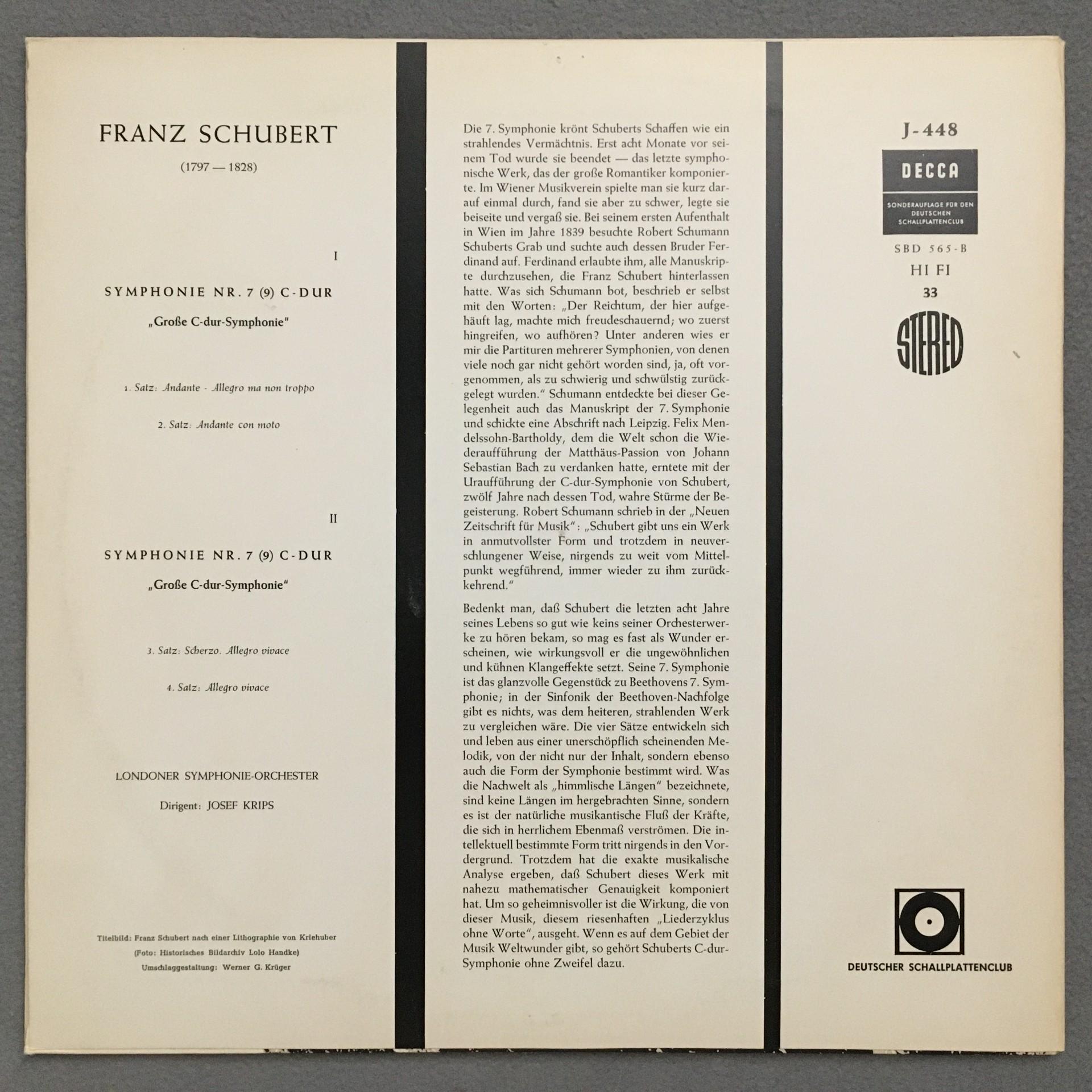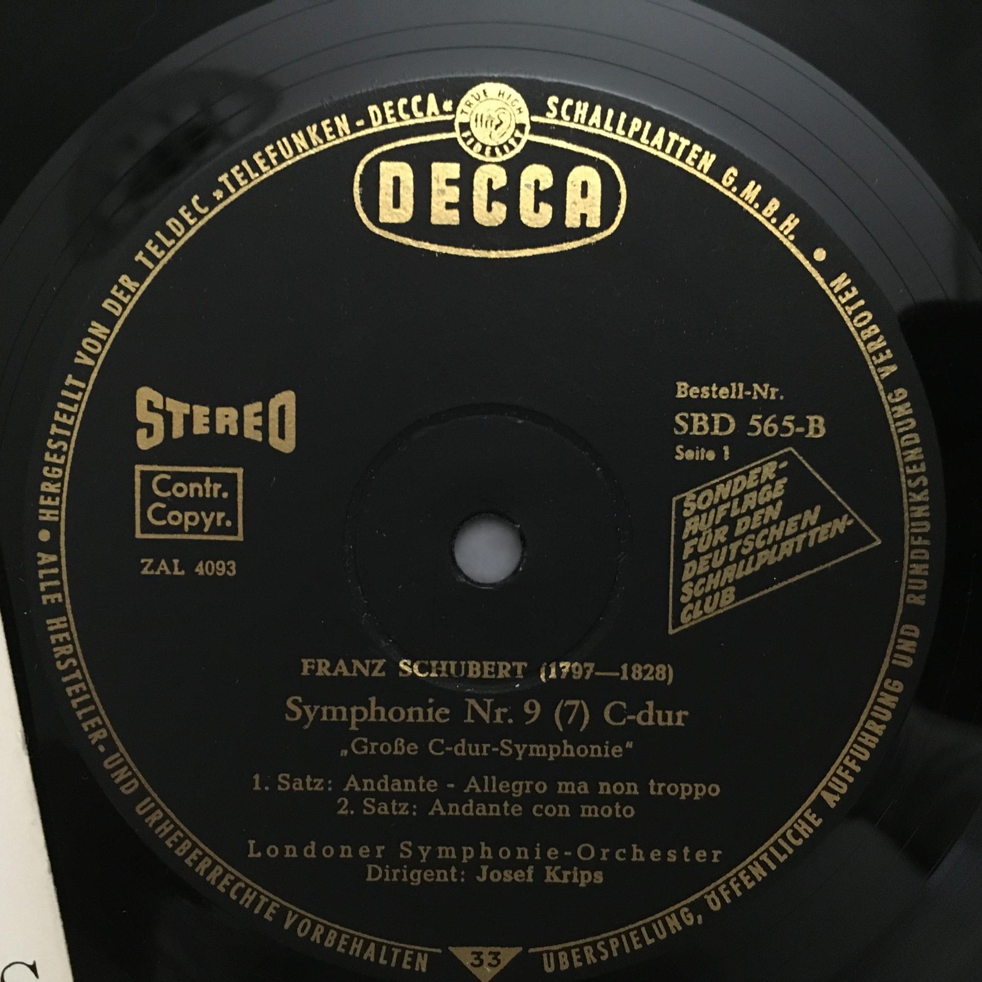 N712 Schubert Symphony No.7 Krips DECCA J - 448 Stereo