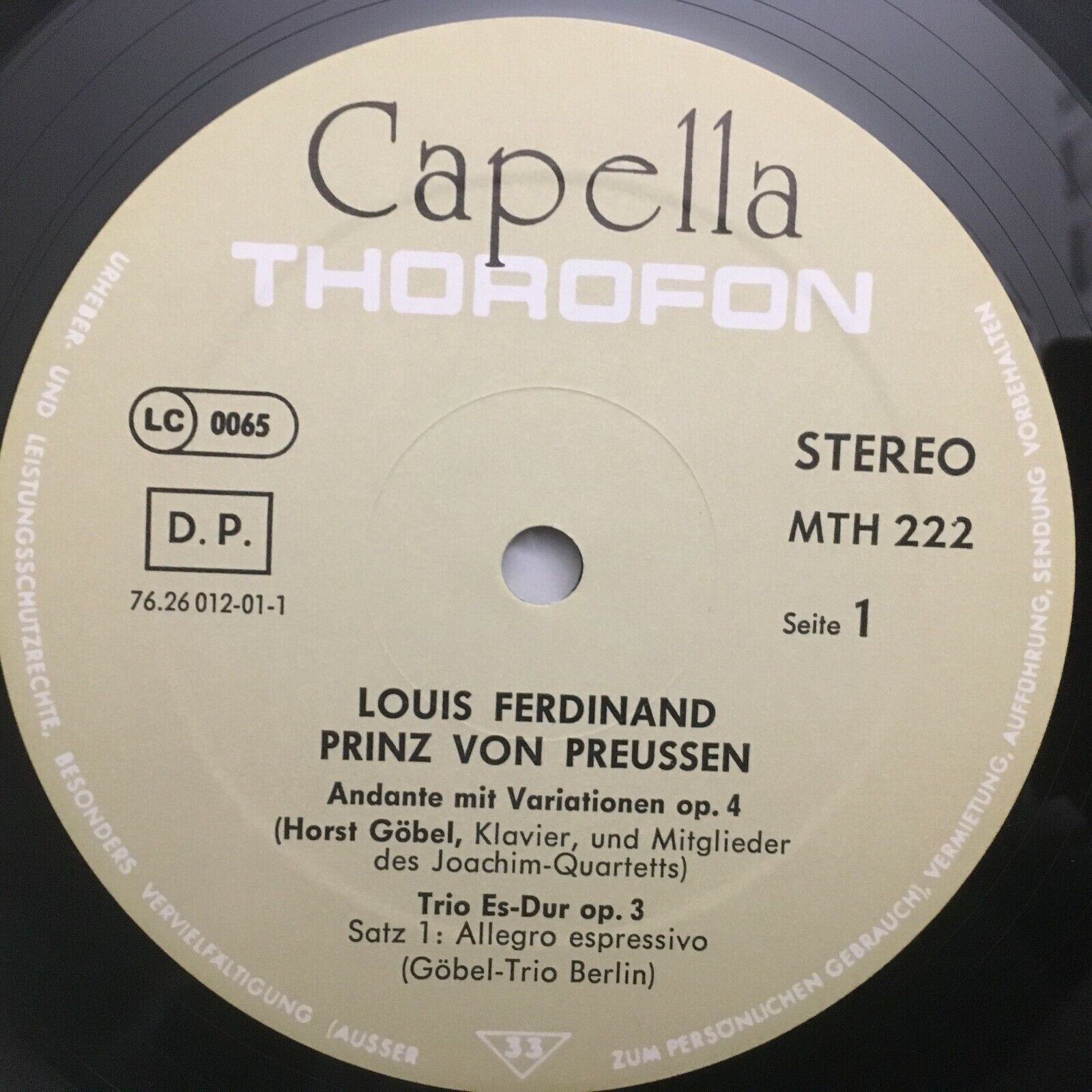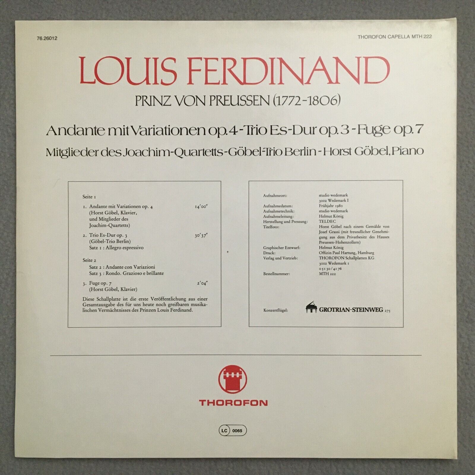 S158 Louis Ferdinand Piano Quartet / Trio Göbel Thorofon Capella MTH 222 Stereo