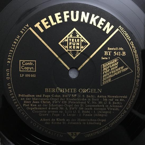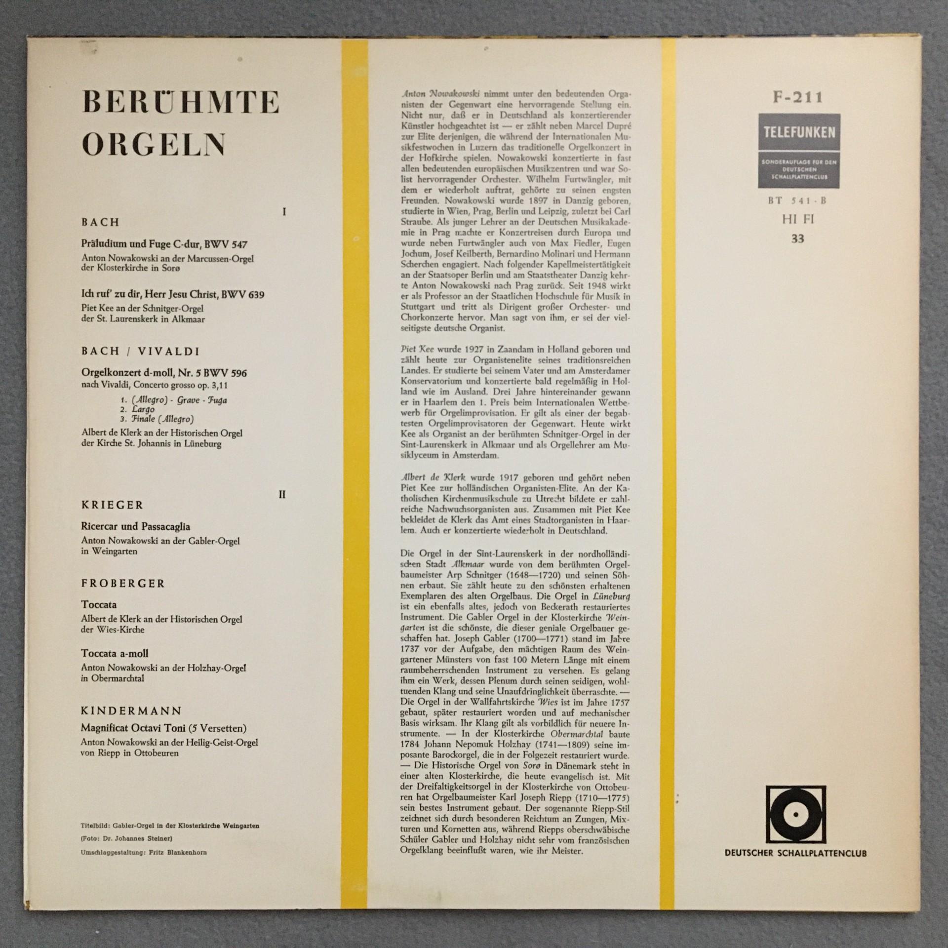 N725 Famous Organs de Klerk Kee Bach Vivaldi Froberger Telefunken F - 211
