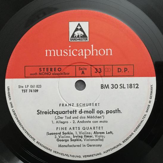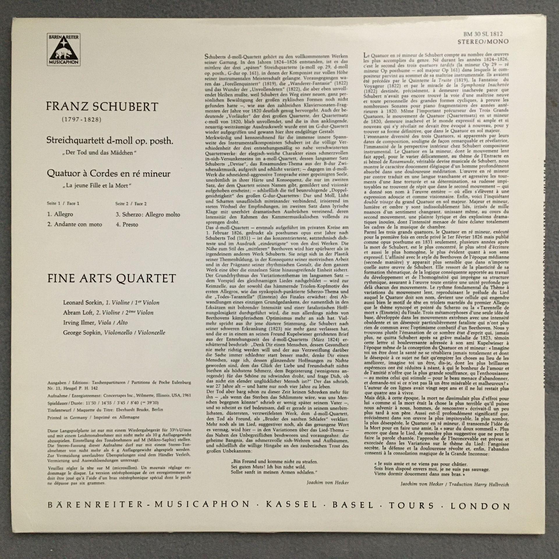 N727 Schubert String Quartet Fine Arts Quartet Bärenreiter BM 30 SL 1812 Stereo