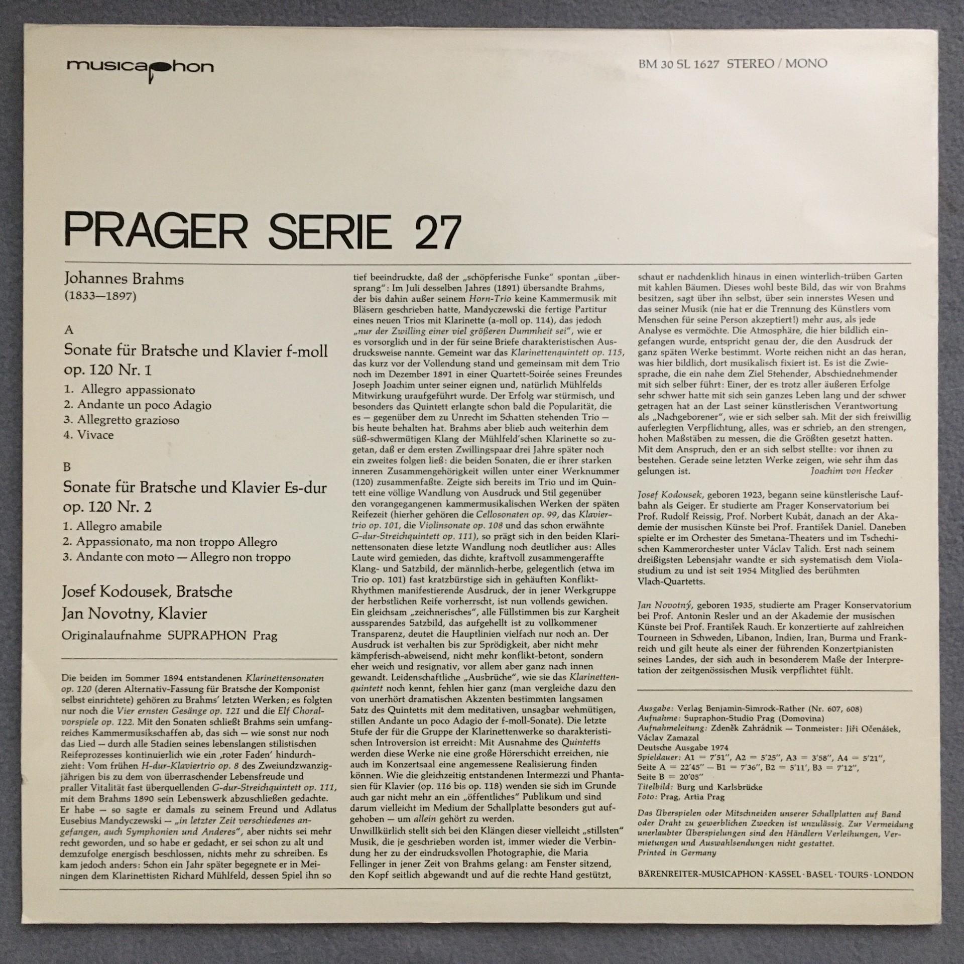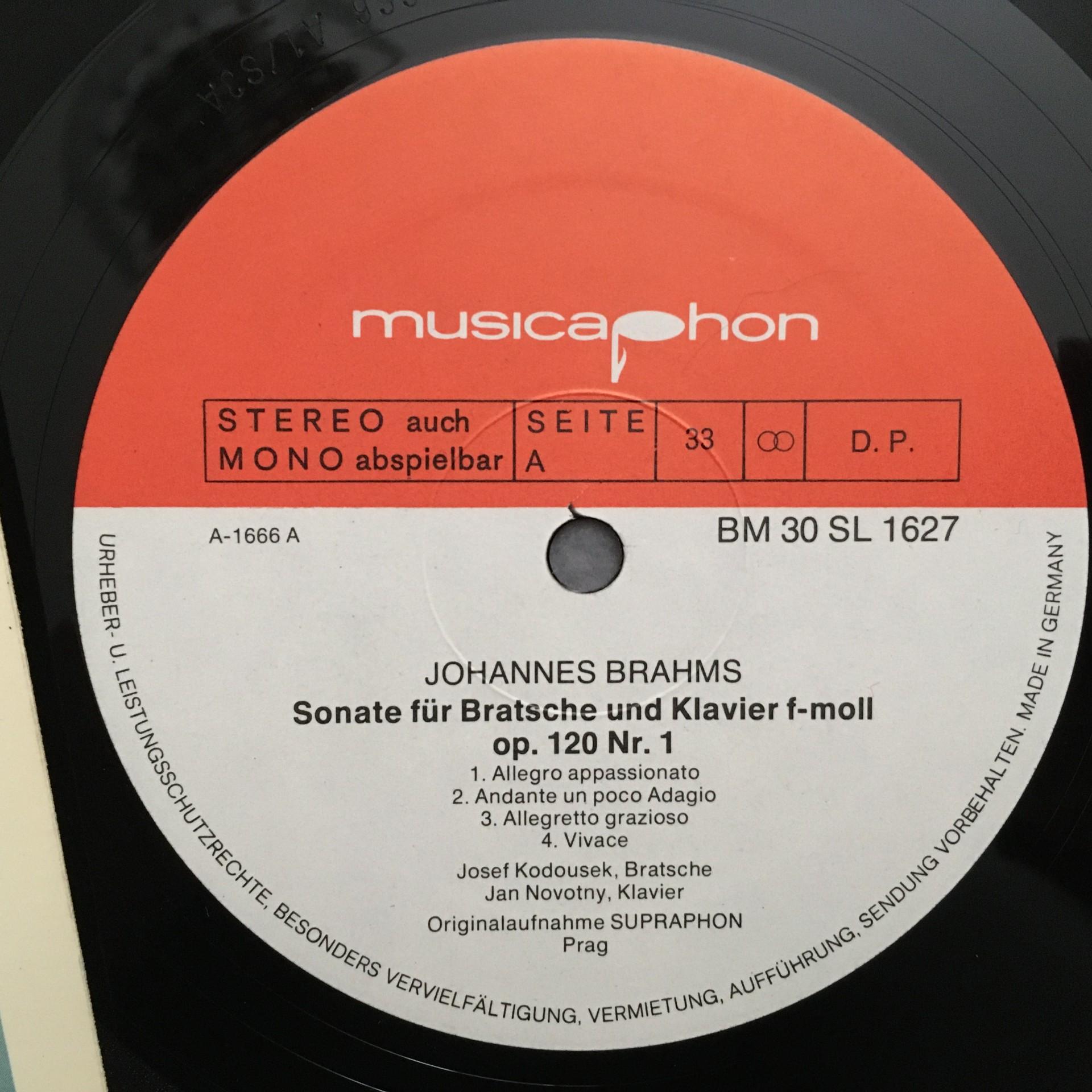 N732 Brahms Viola Sonatas Kodousek Novotny Musicaphon BM 30 SL 1627 Stereo