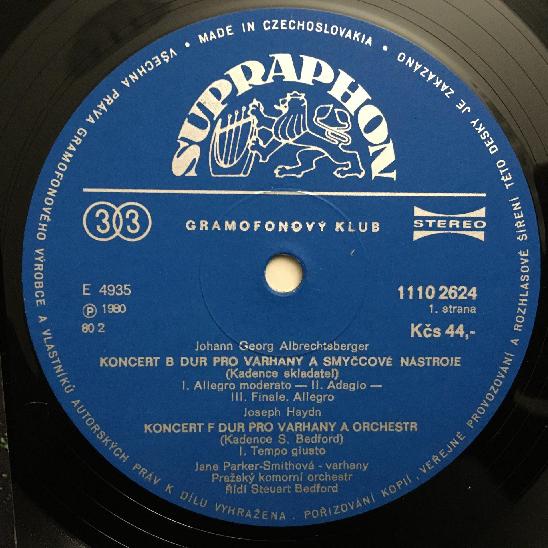 N733 Organ Concertos Parker-Smith Bedford Supraphon 1110 2624 H Stereo