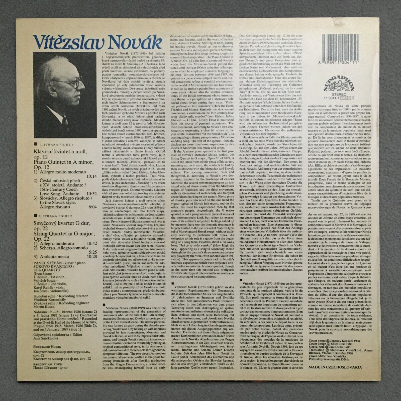 S724 Novak String Quartet Piano Quintet Stepan Supraphon 11 0041-1 Digital St