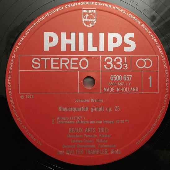 D595 Brahms Complete Piano Quartets Trampler 3LP Philips 6747 068 Stereo