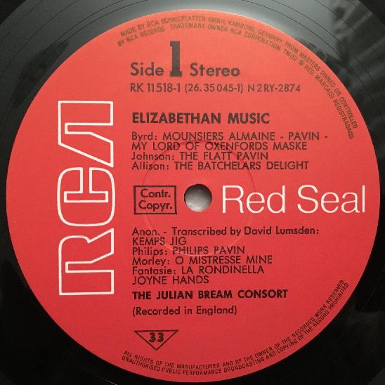 D598 Elisabethan Music Julian Bream Consort 2LP RCA RK 11 518/1-2 Stereo